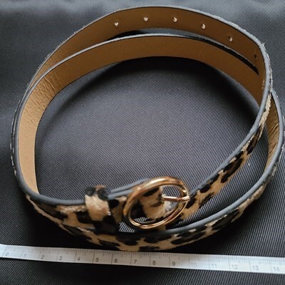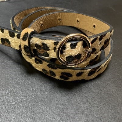 ベルト レディース 革 細め レオパード ファッション ウエストベルト puレザー ゴールドリング バックル れおぱーど 目安ウエスト 74cm-90cm 全長 100cm 幅 2cm