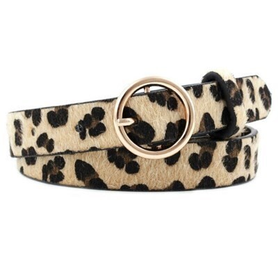 ベルト レディース 革 細め レオパード ファッション ウエストベルト puレザー ゴールドリング バックル れおぱーど #C428-12