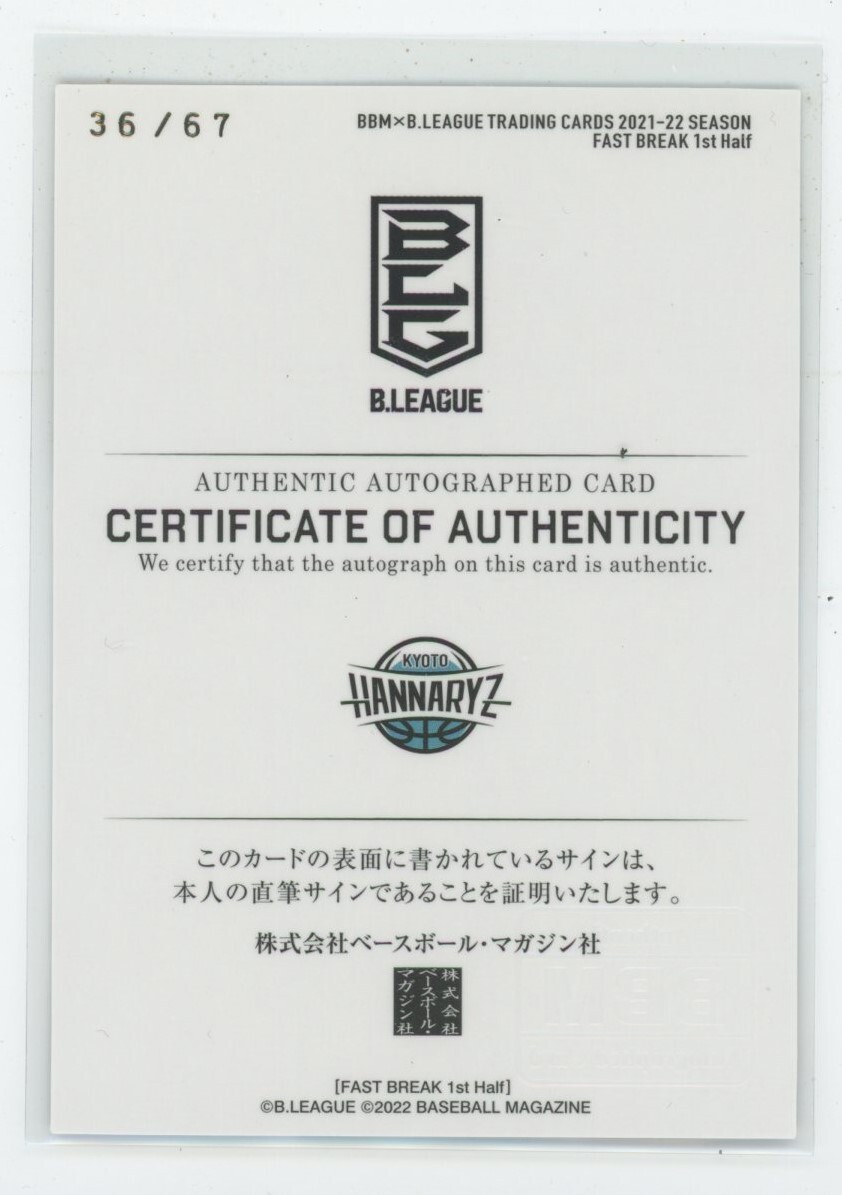 【細川一輝(京都ハンナリーズ)】BBM×B.LEAGUE 2021-22 FAST BREAK 1st Half 直筆サインカード [36/67] 【Bリーグ】