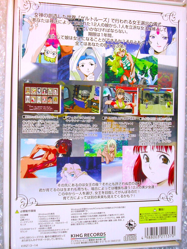 女神によって守護された世界「ゲルトルーズ」。この世界を統治する女王は、国民の中から選ばれた女王候補の中でもっとも優れた少女がその地位につく。 12人の候補はそれぞれ12人の執政官のもとで育てられるが、ひとりの執政官が病に倒れてしまった。 主人公はその執政官の甥であり、叔父にかわって女王候補を任されることになったのだが…。少女育成シミュレーションゲーム。 特典としてマウスパッドと主題歌、ドラマを収録した8cm CDが付属。 脚本 天野裕充。キャラクターデザイン・作画 中沢一登。