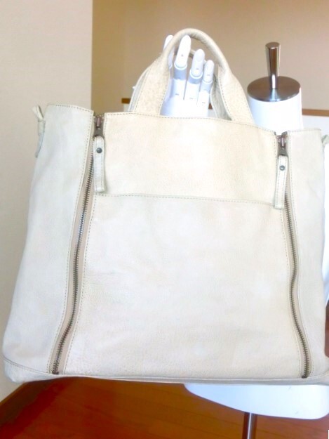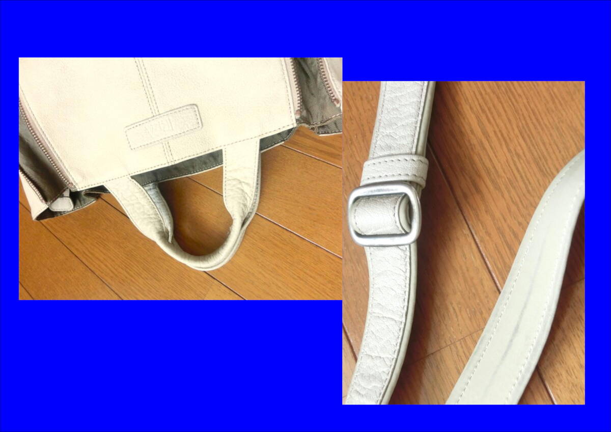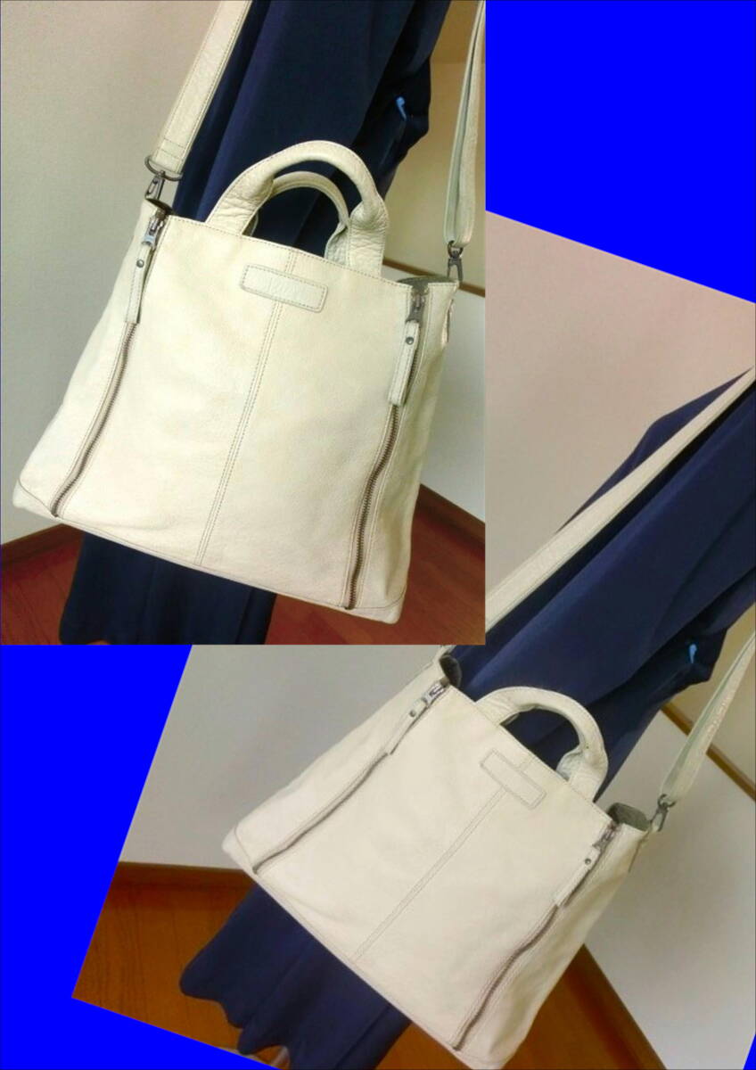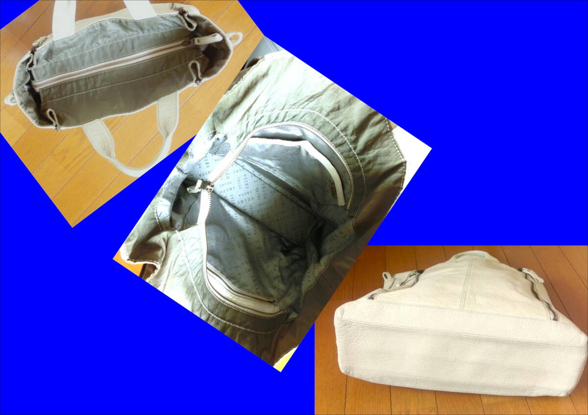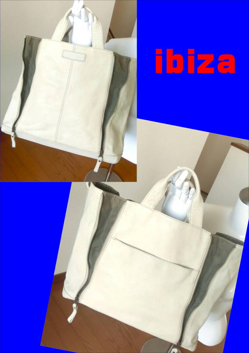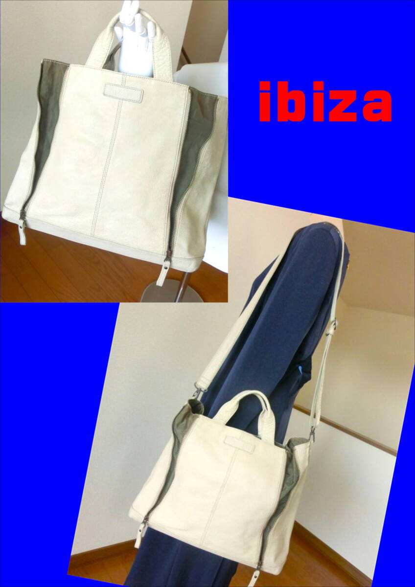 イビザ 送料込即決4,800円 暗めアイボリー色系  日本製 革/ナイロン ちょっと大きめ!ファスナー開で幅広 2WAY IBIZA イビサ
