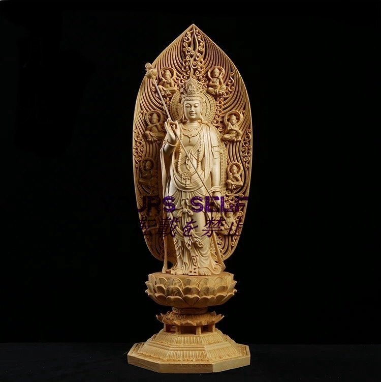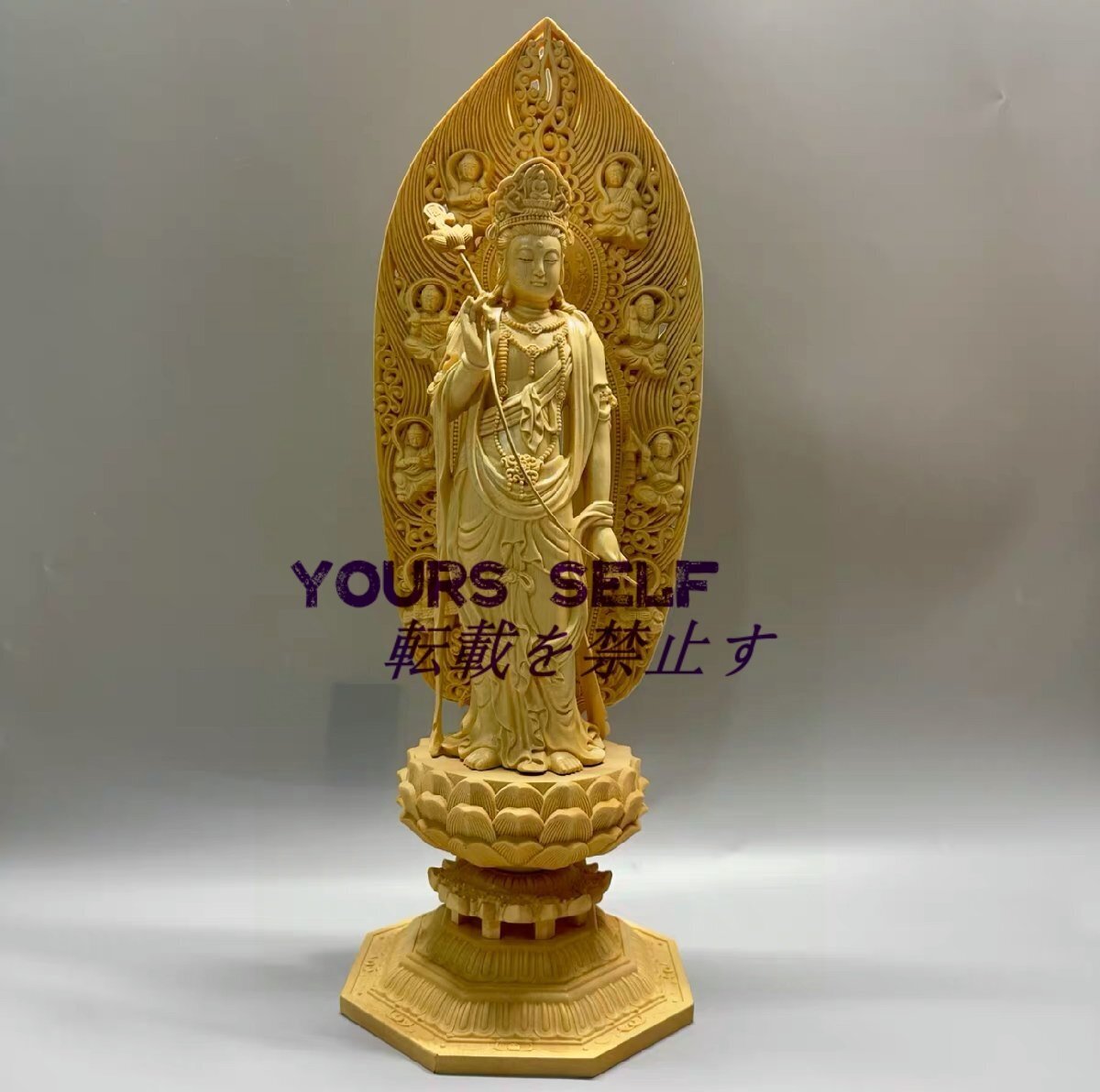 彫刻 新作 観音菩薩 仏教美術 木造 精密細工 木彫仏像 仏教工芸品