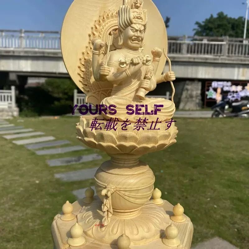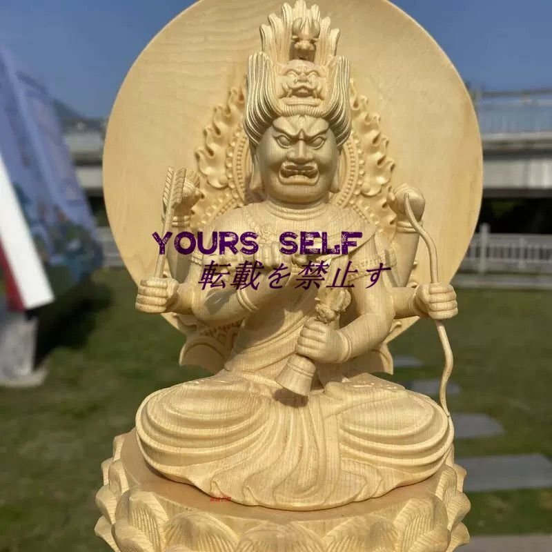 総檜材 木彫仏像 仏教美術 精密細工 仏師で仕上げ品 愛染明王像 高さ31cm