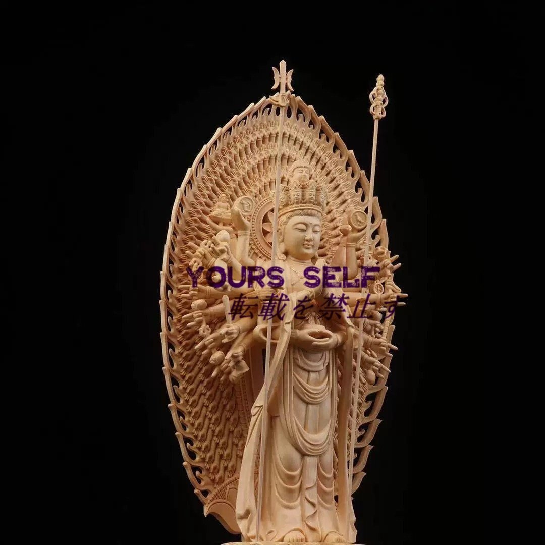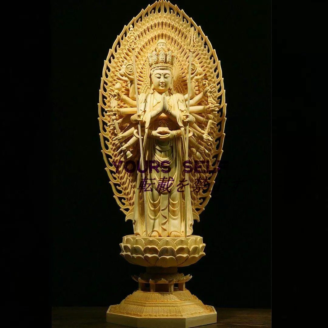 千手観音菩薩 千手観音 観音像 観音菩薩 仏教美術 高さ約43㎝  細密彫刻 木彫 仏像