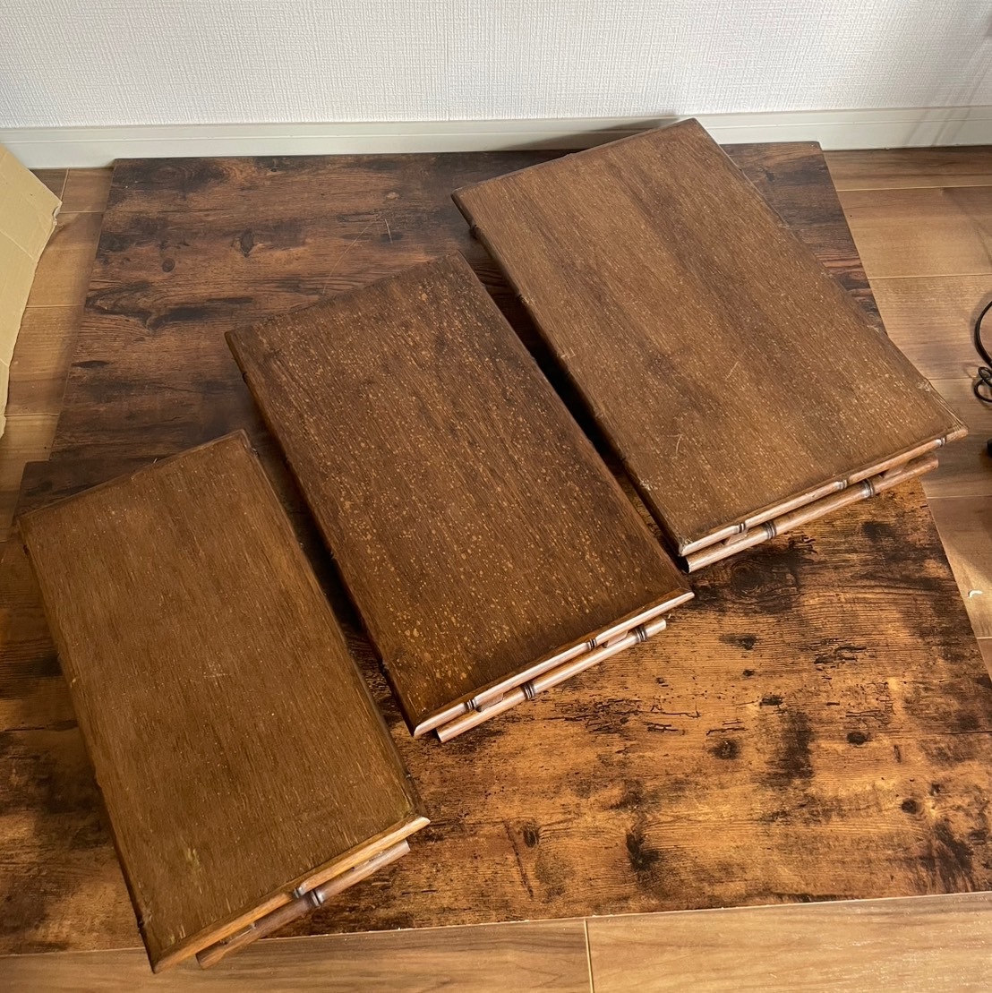 【和美】天然木製 サイズ違い三客揃 煎茶台 花台 飾台 63
