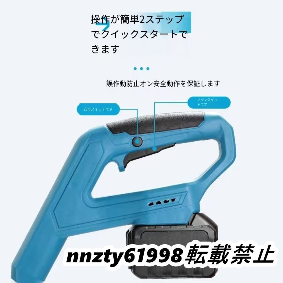 電動除雪機には3.0 Ahの大容量バッテリーが搭載されています。高性能バッテリーにより、長時間の作業が可能で、一回の充電で最大30分間稼働します。これにより、柔軟性が向上し、頻繁な充電が不要になり、ユーザーにとってより便利です。