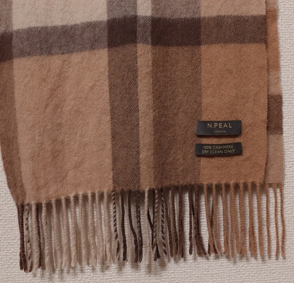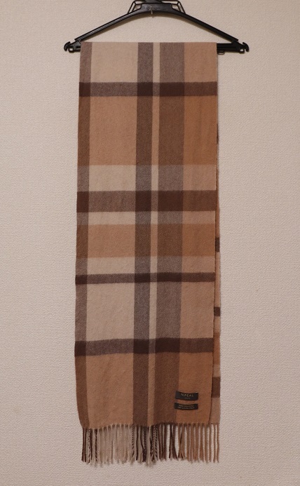 英国製!上質!チェック柄 格子柄 マフラー カシミヤ100%!ベージュ×ブラウン 約30×180cm