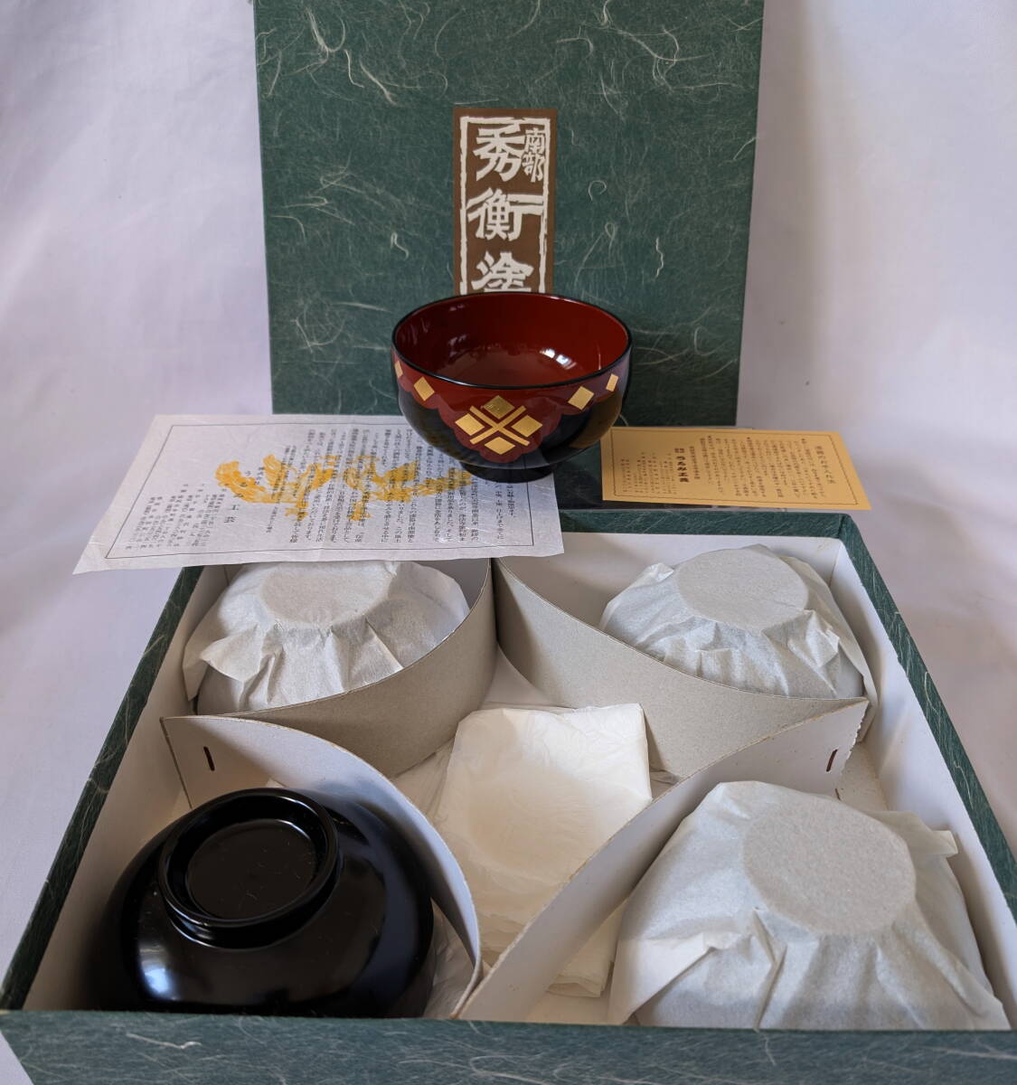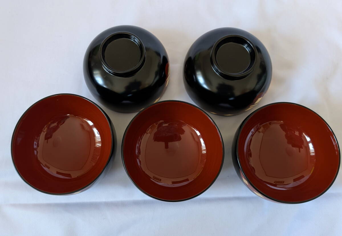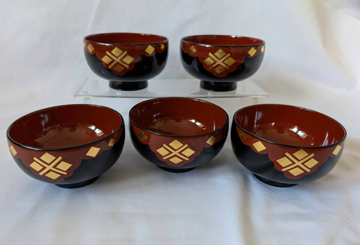 *岩手 うるみ工芸*  秀衡塗  天然木 有職菱紋   漆塗り椀 5客  * 金箔碗 漆塗り
