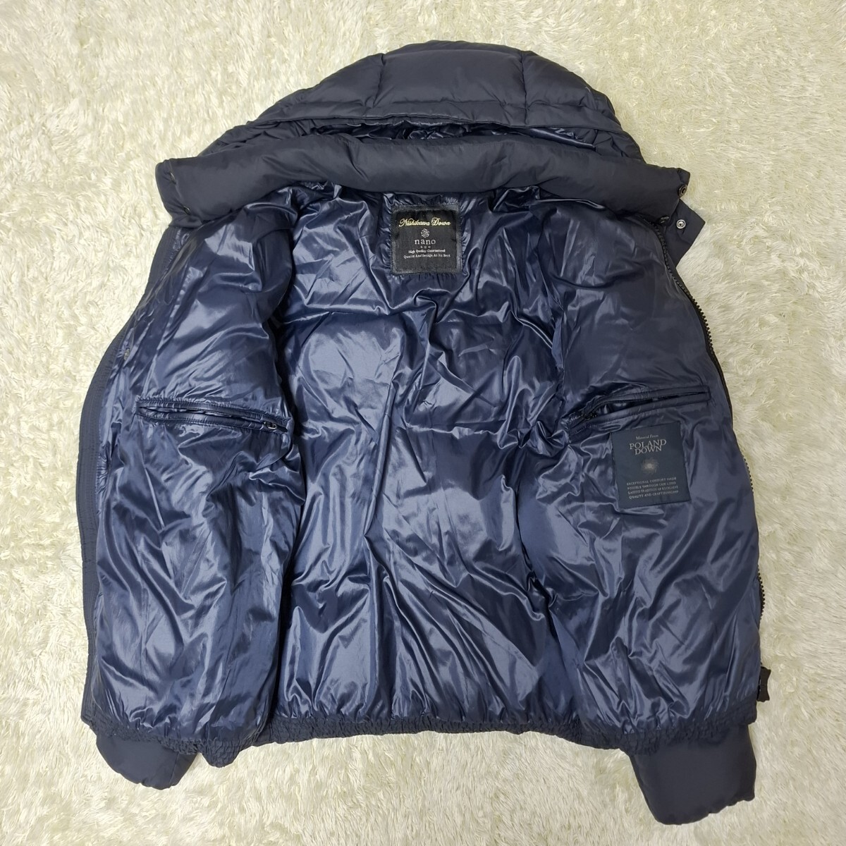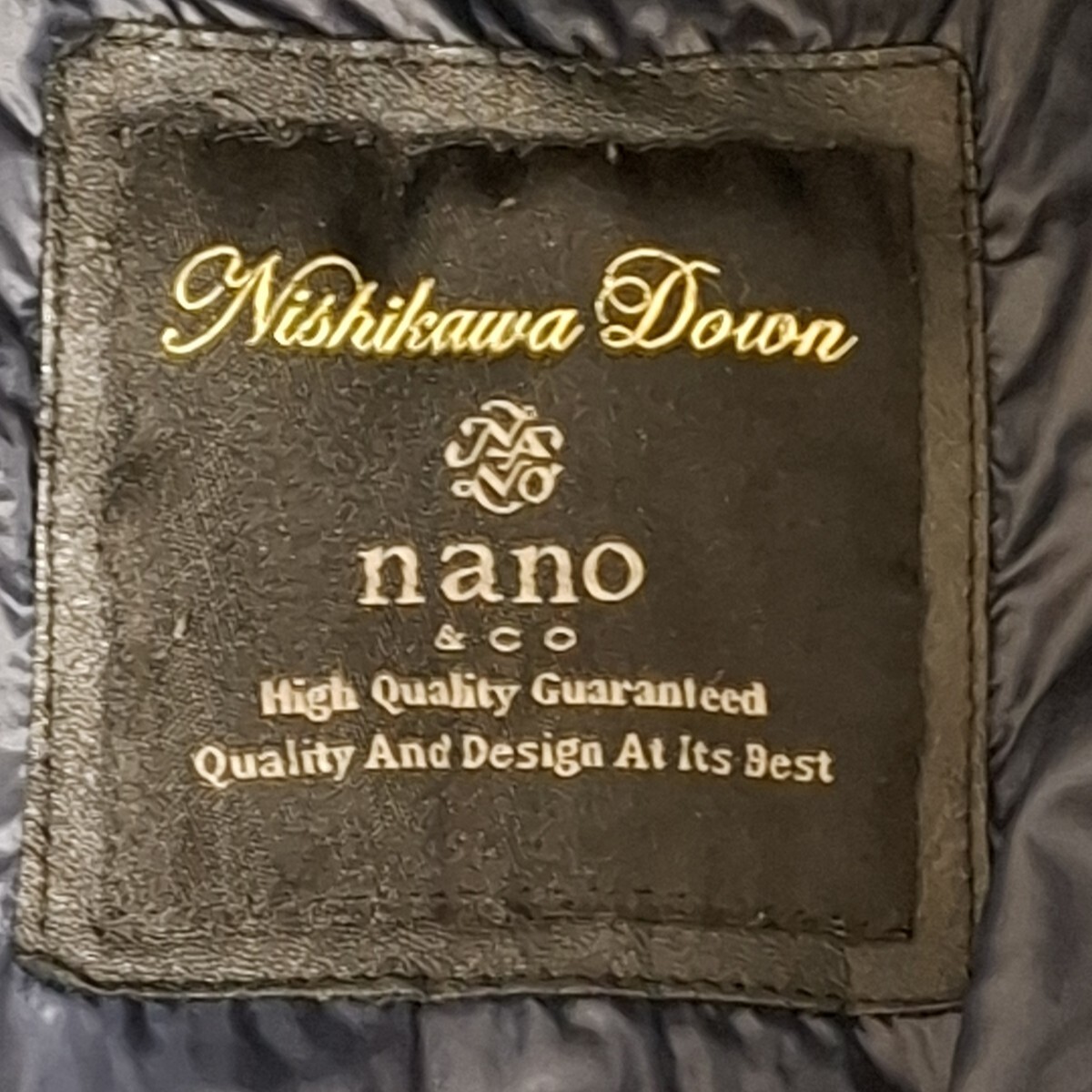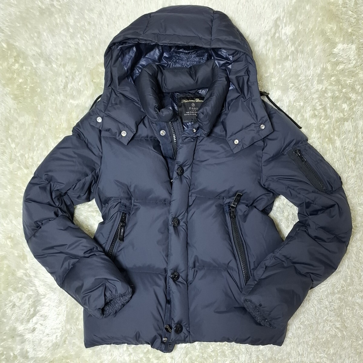 ナノユニバース nano universe 西川ダウン ダウンジャケット 無地 濃紺 S ナイロン・ダウン・フェザー フード付