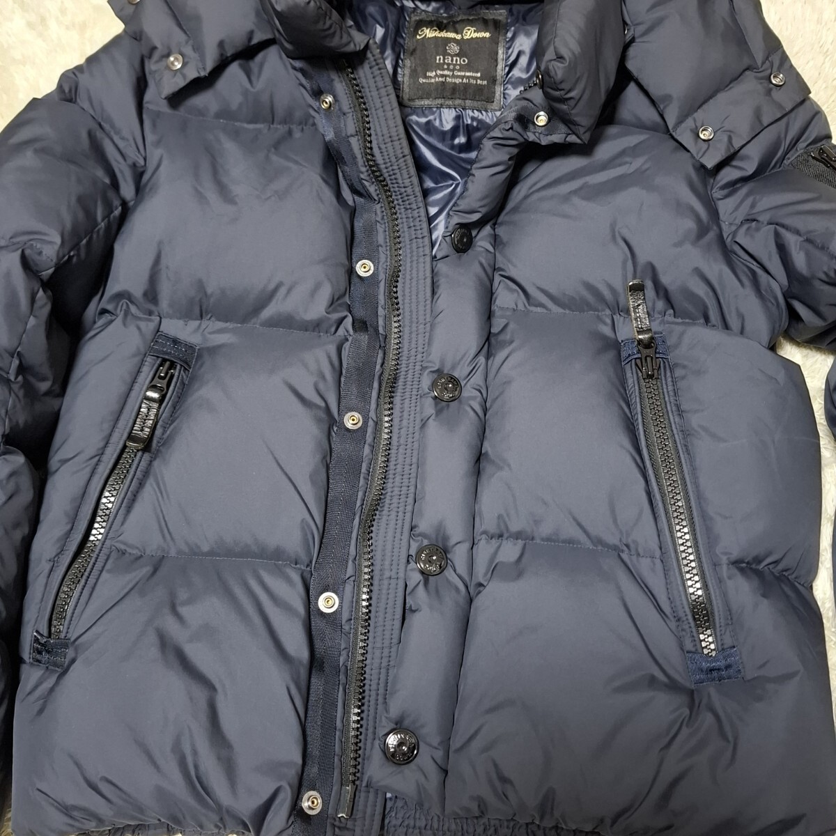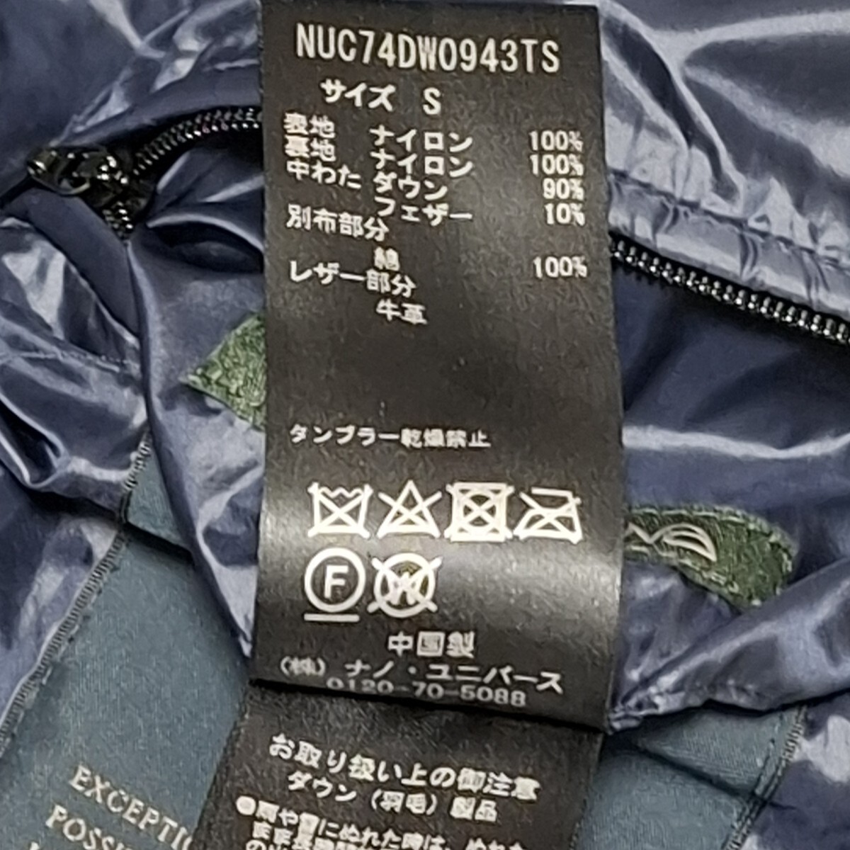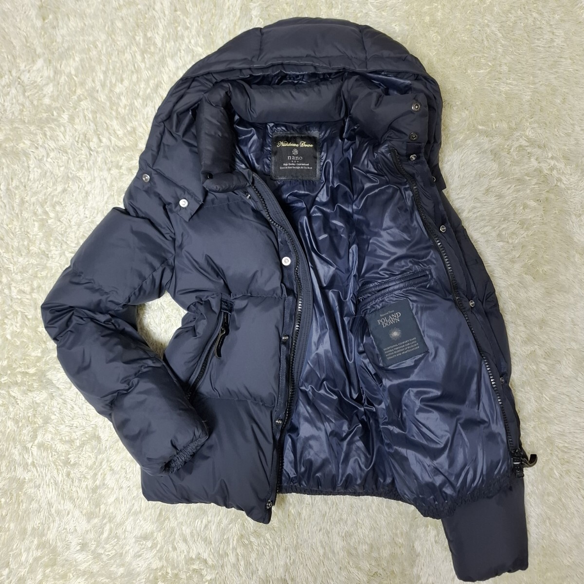 ナノユニバース nano universe 西川ダウン ダウンジャケット 無地 濃紺 S ナイロン・ダウン・フェザー フード付