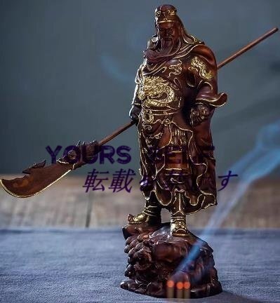 木彫り 仏像【関羽像】三国志 武財神(木製:ツゲ 金泥仕上)古色 総高約19.5cm