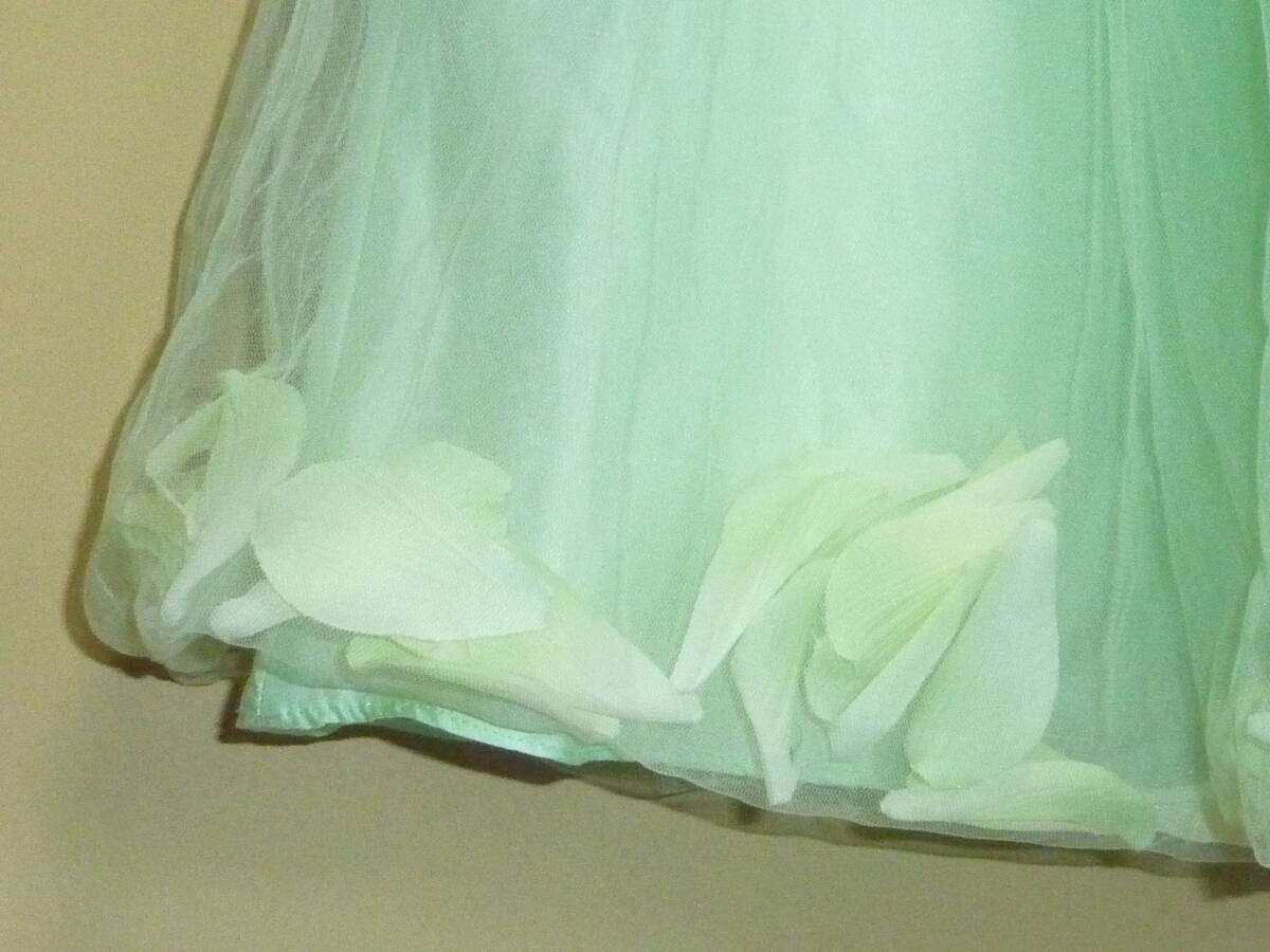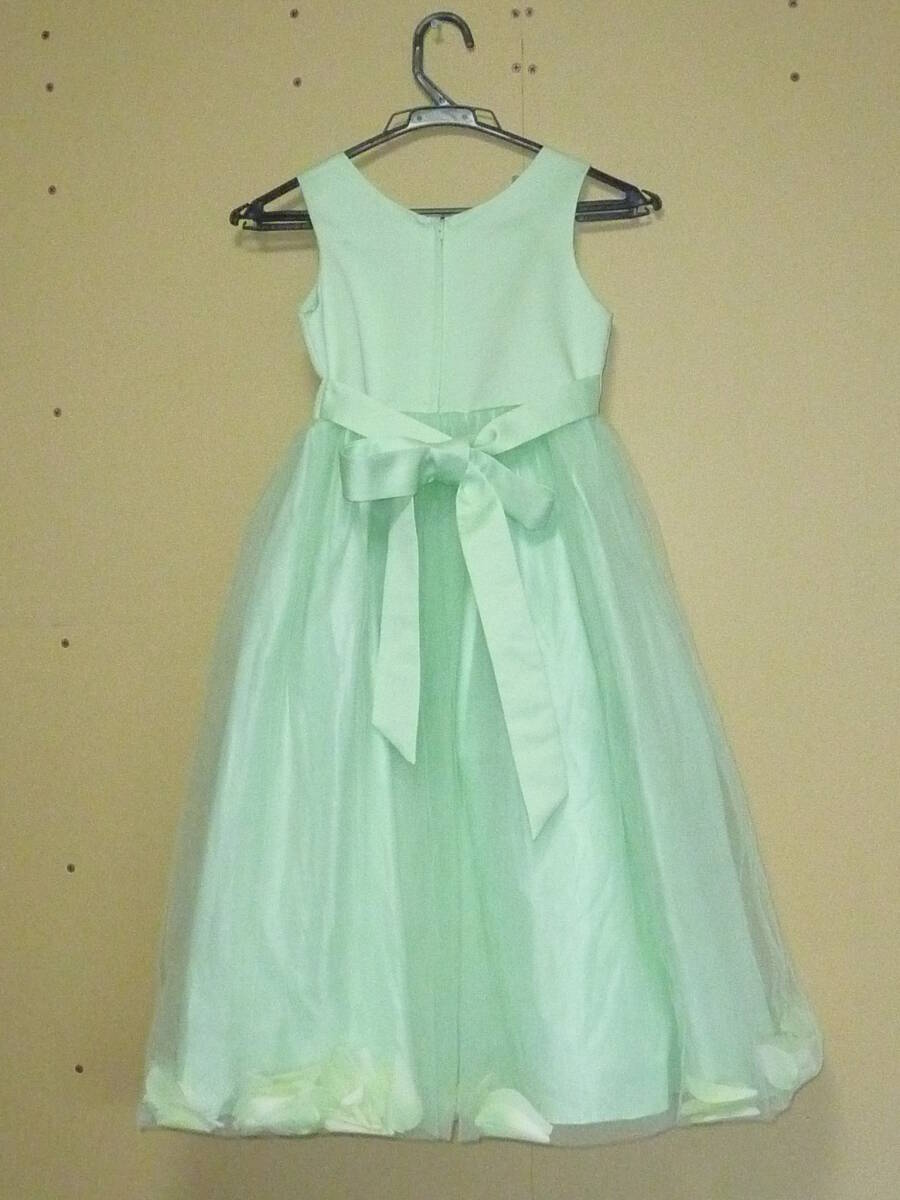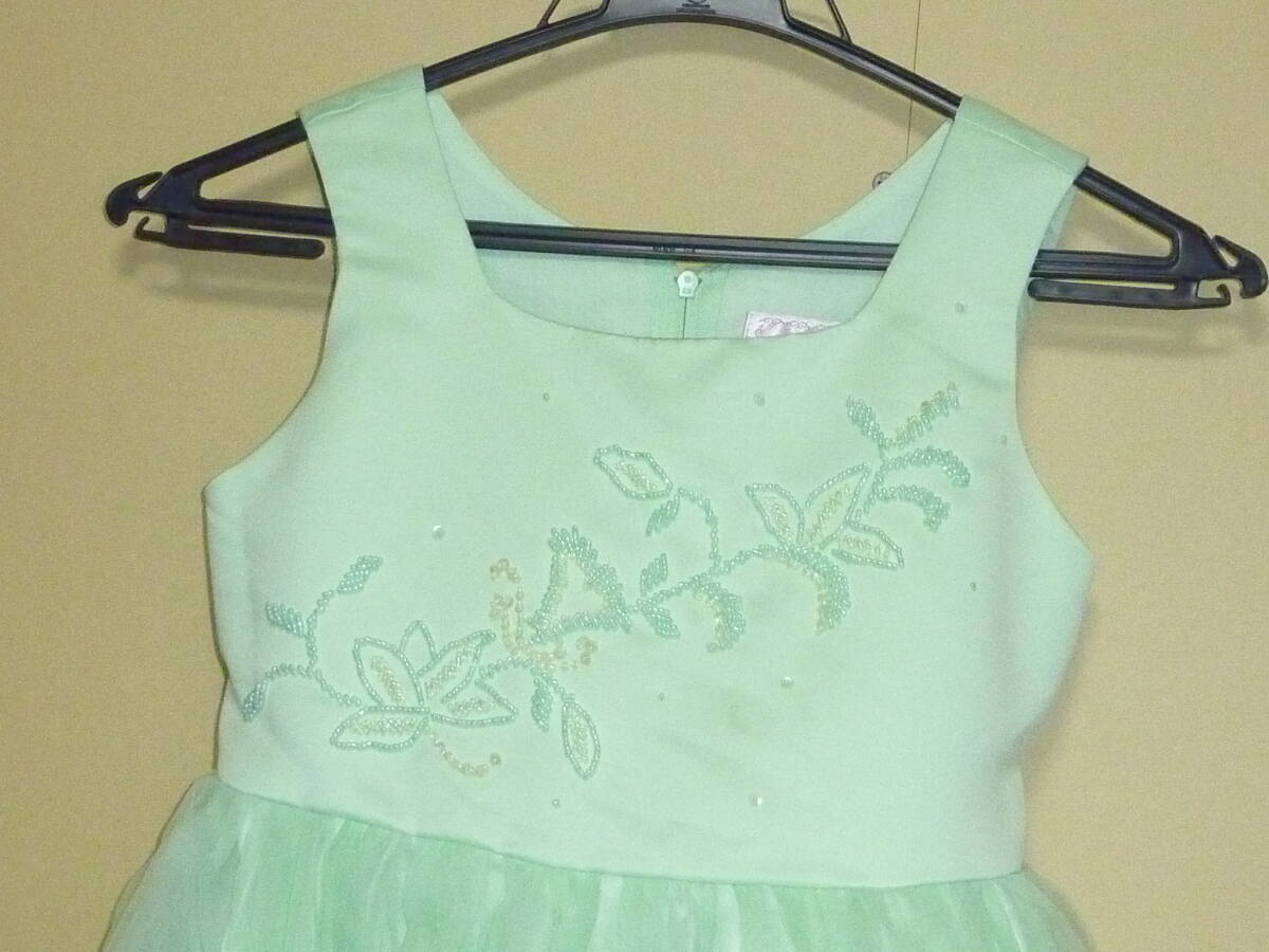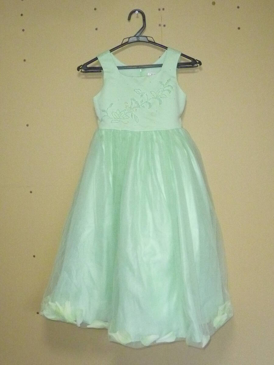 ★子供服★Baby Style/キッズドレス/120cm /袖なし/黄緑/ビジュー/チュールスカート/花びら/ロング丈/ボリューム