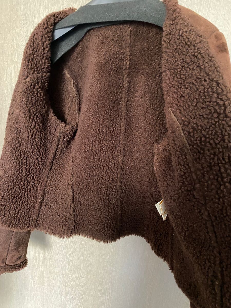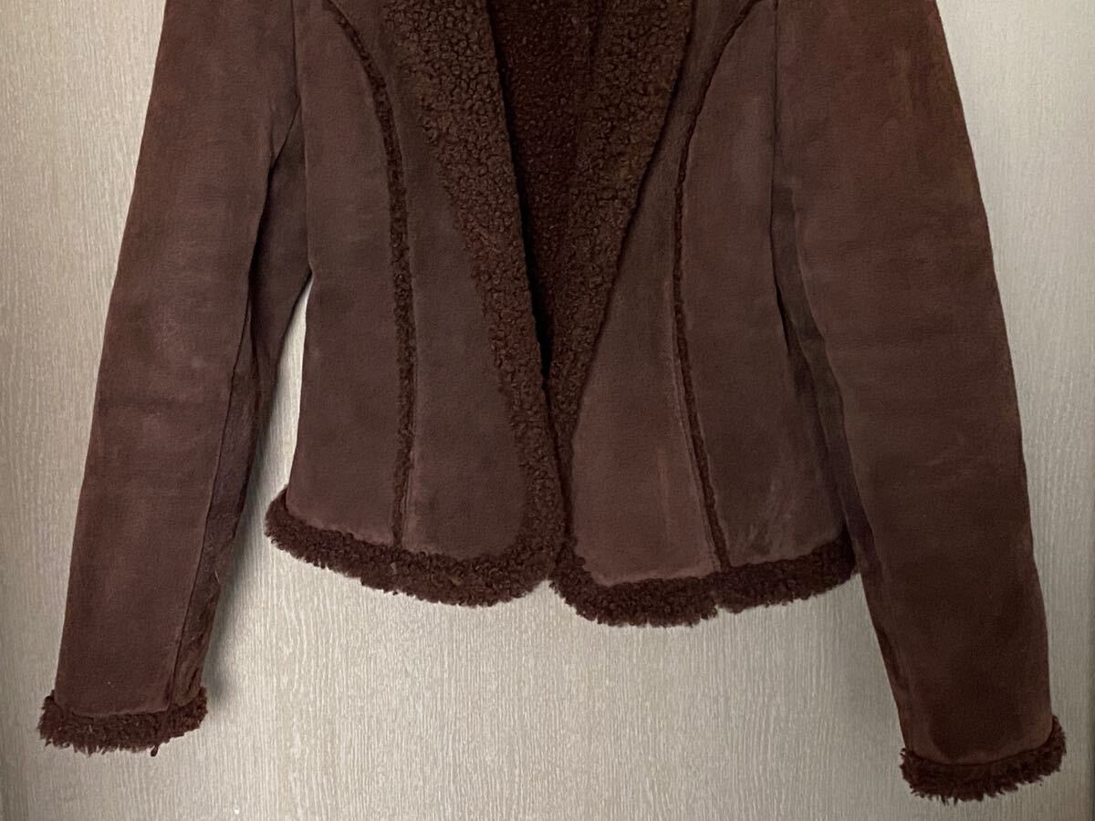 TRUSSARDI トラサルディ 42 リアルムートン ファー 羊革 ノーカラー ジャケット コート レディース カーディガン ブラウン