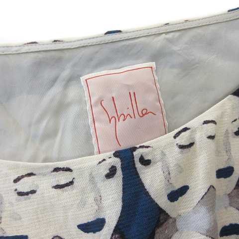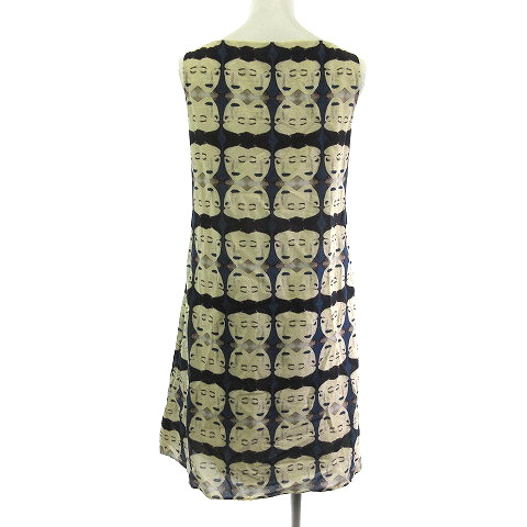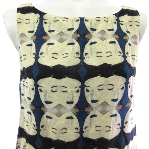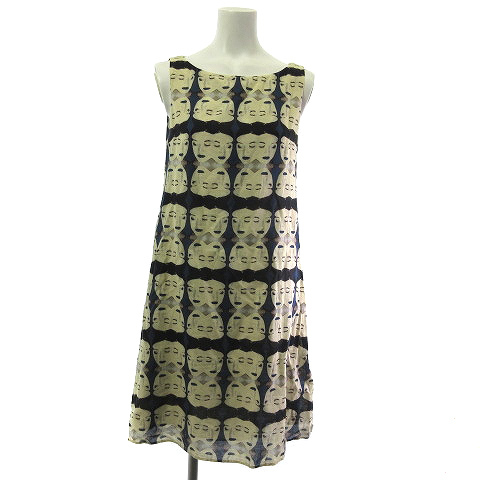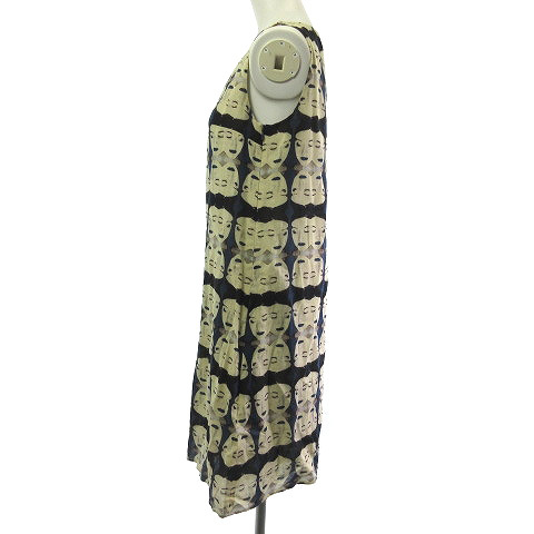 シビラ SYBILLA GBEJA-42390 ノースリーブ ワンピース ひざ丈 リネン混 ネイビー 紺 M レディース