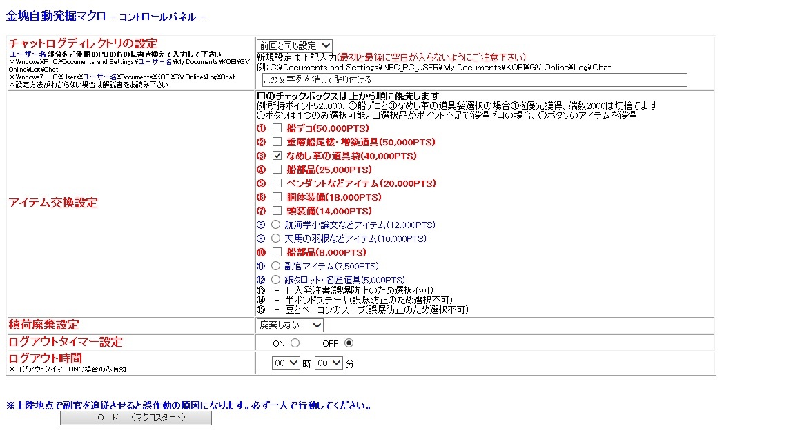 - 2025年最新アップデート対応版 - 1ファイルをダブルクリックするだけでマクロがスタートします。【ダブルクリックだけの簡単操作】 マクロ停止も停止ボタンを1クリックするだけでの超簡単設計です。 【クライアント改変一切なしの安心設計】 本商品はチート行為に該当するクライアント改変・データ改ざんは一切行いません。 クライアントには一切依存しない完全独立システムのため、安心してご利用いただけます。 ※オンラインゲーム専用のマクロです。 【大金塊発掘マクロ】 大金塊発掘に必要な行動を全てフルオート化。具体的には、 (1) サンフランシスコ出港所 という動作をループさせます。(2) 委任航行で北米大陸西岸へ (3) 発掘ポイントまで移動 (4) 発掘開始 (5) 大金塊発掘または積み荷満載で発掘終了 (6) 委任航行にてサンフランシスコへ (7) 金塊の換金+大金塊所持の場合はアイテム交換 (8) (1)へ ※行動力回復等も自動で行います。 ※獲得対象アイテム(なめし皮の道具袋やストレージ増築道具など)を指定出来ます。 【動作可能環境】 - 対応OS - Windows 7以降 ※32/64bit版OS対応 - 対応解像度 - 800x600ウィンドウ表示が可能であること。 |