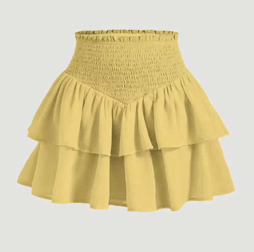 Mia muse-女性用ハイウエストレイヤードミニペプラムスカート、デイリーベーシックスカート、オールシーズン、プレッピー(Yellow,XS)