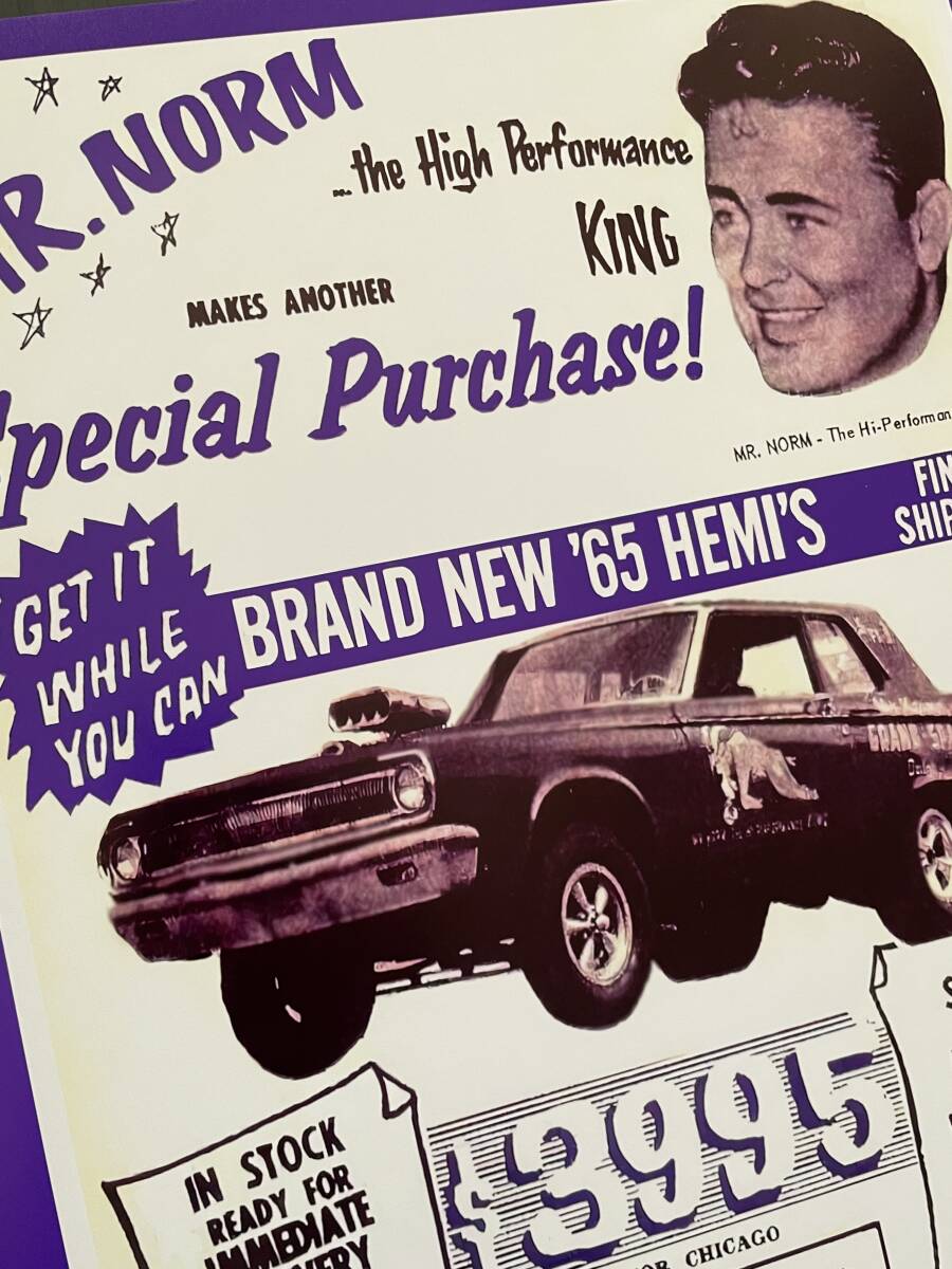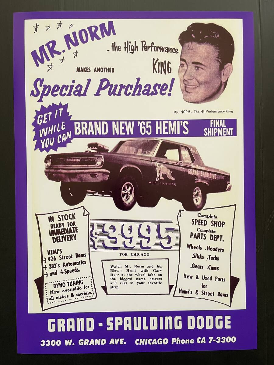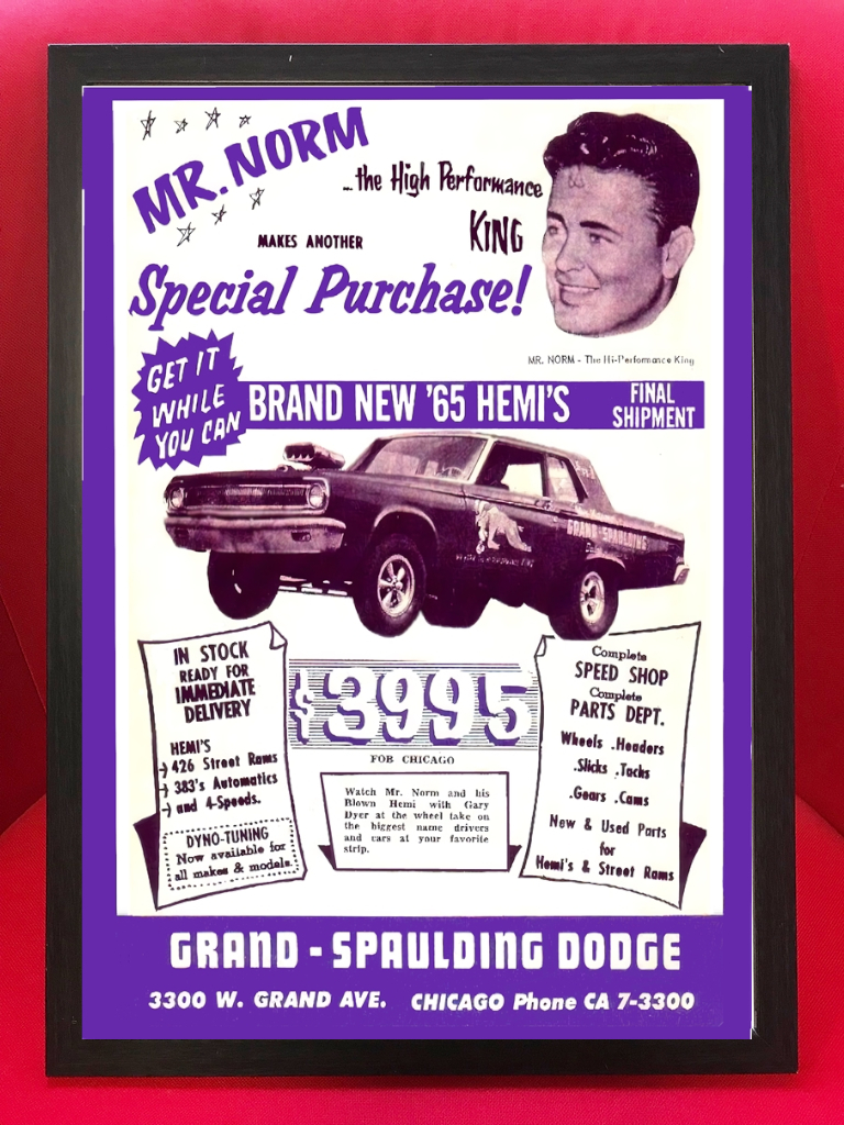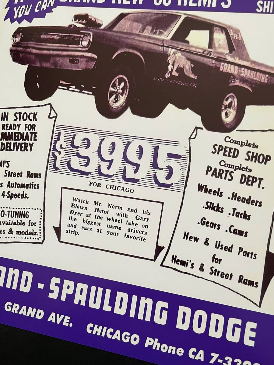 "1965 Dodge Hemi Coronet A990" WO51 Mr. Norm's Grand Spaulding Dodge アメリカ・イリノイ州シカゴにあったハイパフォーマンスカーディーラーとして60's・70'sに名を馳せた「Mr. Norm's Grand Spaulding Dodge」の1965年ダッジ"HEMI"コロネットA990の当時の広告をアレンジしたレアなポスターです。(ビンテージ物ではありません) ポスターサイズ:42cm × 29.7cm (額は付属しません。ポスターのみの出品です。額はA3サイズ用がピッタリです) こちらのポスターは高品質で厚みのあるアートペーパーに美しくプリントされたもので非常にハイクオリティなモノです。クラフト紙や布にプリントしたような粗い画質ではありません。存在感があり、しかも飾るのにも困らない絶妙なサイズですので、お好みのフレームに入れディスプレイするのにも最適です。また、しっかりとした厚みのあるポスターですので、そのまま無造作に壁などにピンでとめるディスプレイのスタイルもおススメです。 趣味の部屋・ガレージ・カフェ・ショップ・Bar・オフィスなどに! ※60's・70's・80'sを中心にマニアックな映画・旧車・バイク・音楽バンド関連などの様々なポスターを多数出品中ですのでチェックしてみてください! Click→映画関係ポスター Click→音楽関係ポスター Click→自動車関連ポスターA Click→自動車関連ポスターB Click→オートバイ関連ポスター Click→その他ポスター | ||