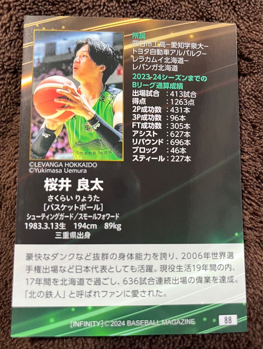 BBM2024 スポーツトレーディングカード INFINITY インフィニティ レギュラー バスケットボール 桜井良太