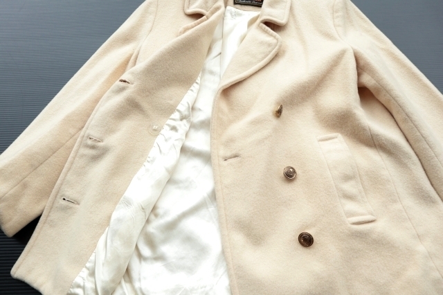 ★商品状態★ ・着用感ございますが特に目立つダメージや汚れなどはございません。 ・問題無く着用していただける程度かと思います。 ・ボタン合わせ右上のレディースものになりますが男性でも着用可能なサイズ感かと思います。 ・MADE IN USA、肩パッド入り ★素材★ 100% WOOL ★配色★ 生成りが近いかと思います。 ★サイズ表記★ レディース12 メンズS程度 ・実寸を参考にして下さい。 ★実寸サイズ★ 肩幅42㎝ 身幅51㎝(脇下~脇下) 着丈69㎝(襟下~裾) 袖丈56㎝(肩~袖先) ・平置きにての採寸となります。 ・若干の誤差はご了承ください。 | ||||