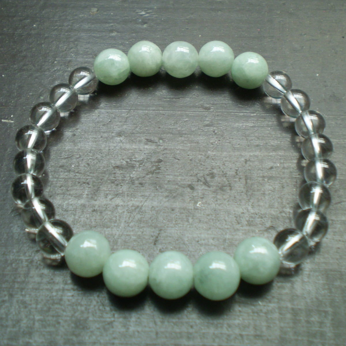 本翡翠・ジェダイトx水晶ブレスレット 天然石 パワーストーン