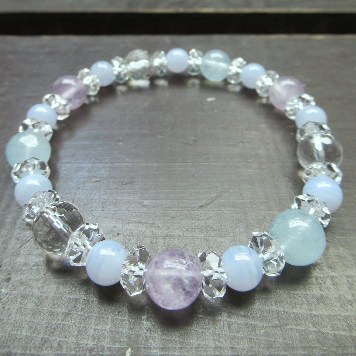 アクアマリンxラベンダーアメジストxブルーレースブレスレット 天然石 パワーストーン