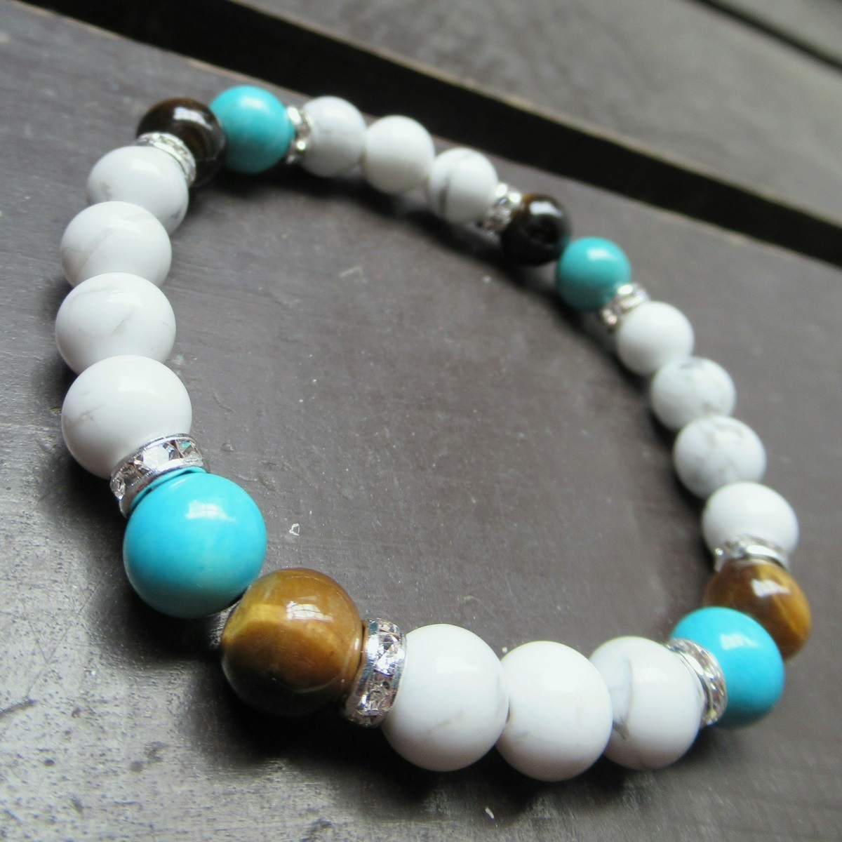 ハウライトxハウライトターコイズxタイガーアイブレスレット 天然石 パワーストーン
