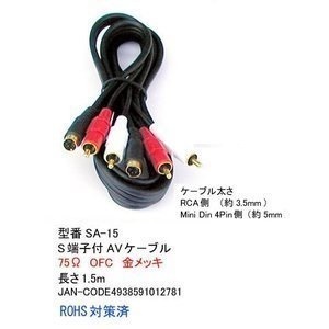 | 【SA-15】S端子AVケーブル S端子x1/RCAx2(赤・白) 1.5m バルク発送(袋無し) | |||