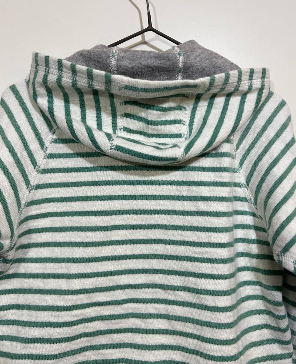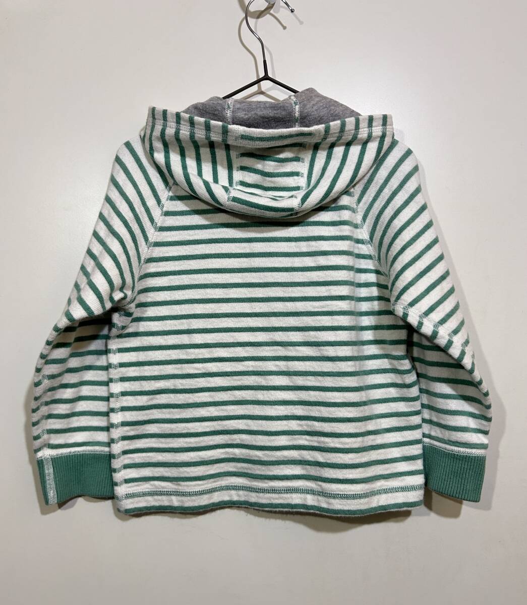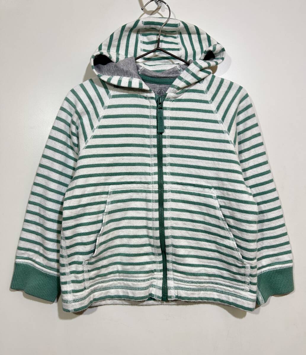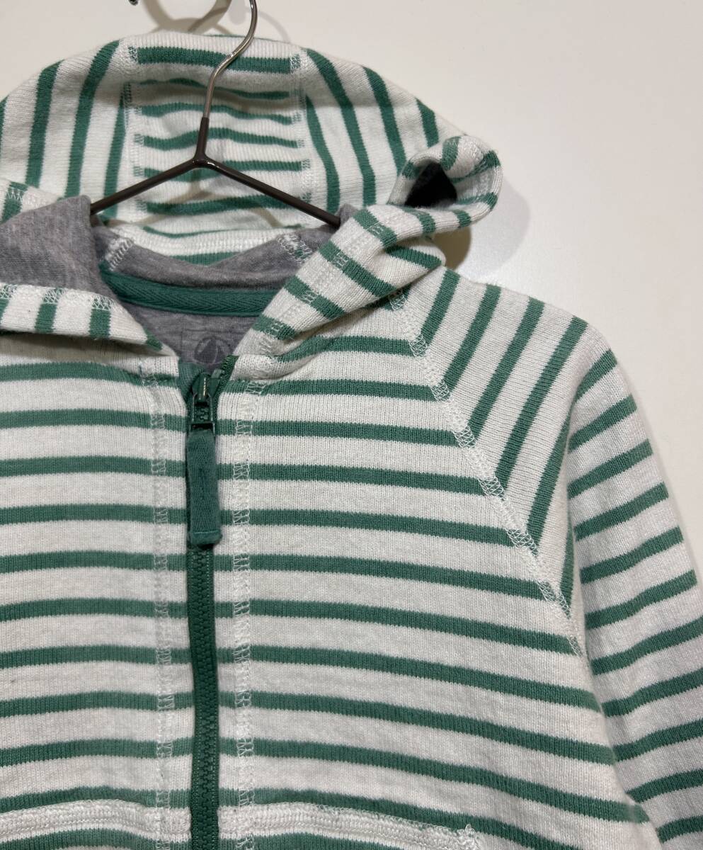 Petit Bateau プチバトー ボーダー スウェット フルジップ パーカー ジップアップ フーディー 120位 白 緑 ホワイト グリーン 裏地グレー