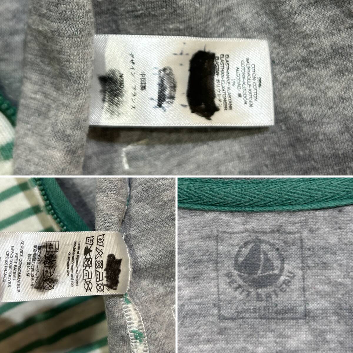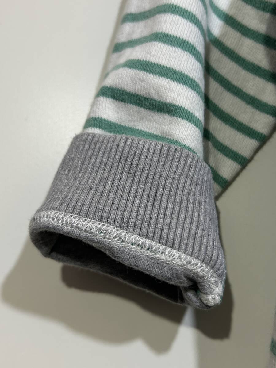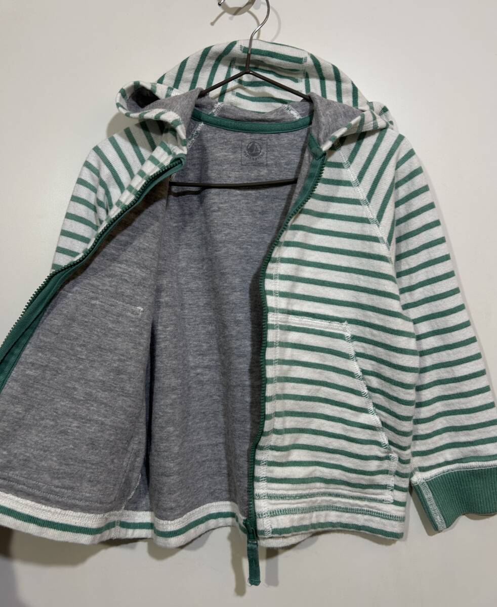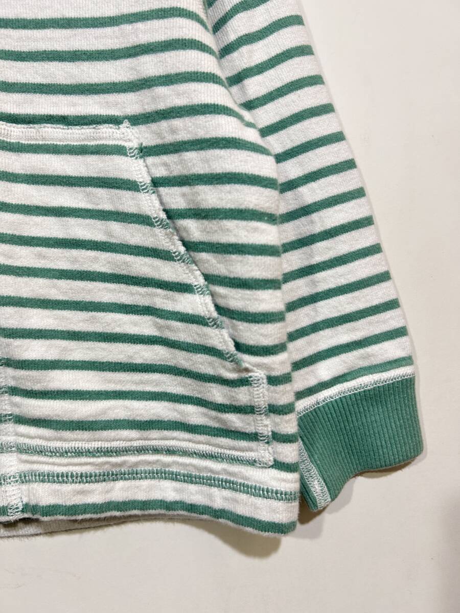 Petit Bateau プチバトー ボーダー スウェット フルジップ パーカー ジップアップ フーディー 120位 白 緑 ホワイト グリーン 裏地グレー