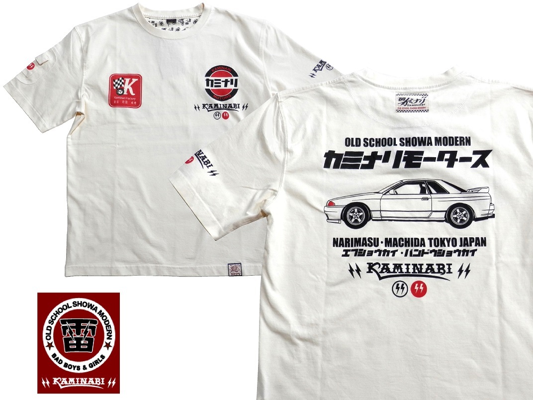 カミナリ/KAMINARI/XLサイズ/半袖Tシャツ/KMT-256/オフホワイト/エフ商会/新品/送料無料/昭和/旧車/R32/スカイライン/GTR