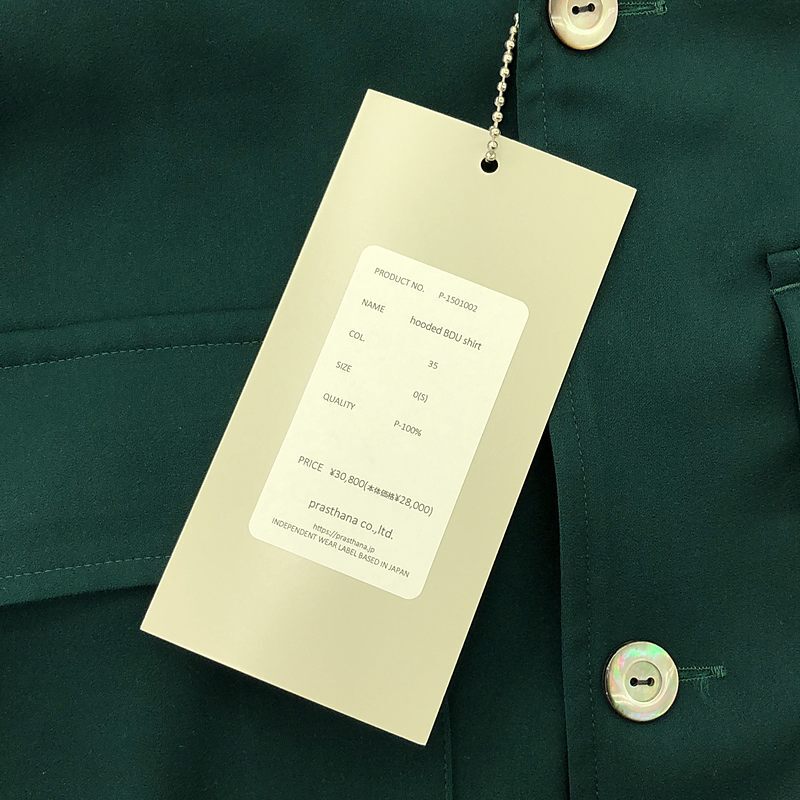 【新品】 prasthana / プラスターナ | hooded BDU shirt シャツ | S | グリーン | メンズ