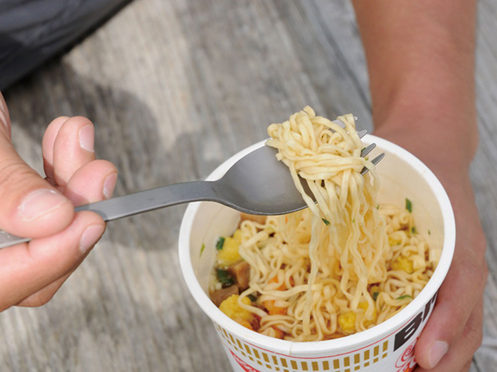 BIGサイズのカップラーメンで使用した場合でも、指が2本かかる長さですので、食事のストレスはありません。