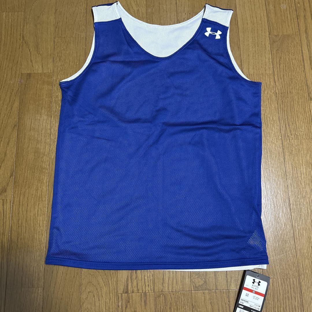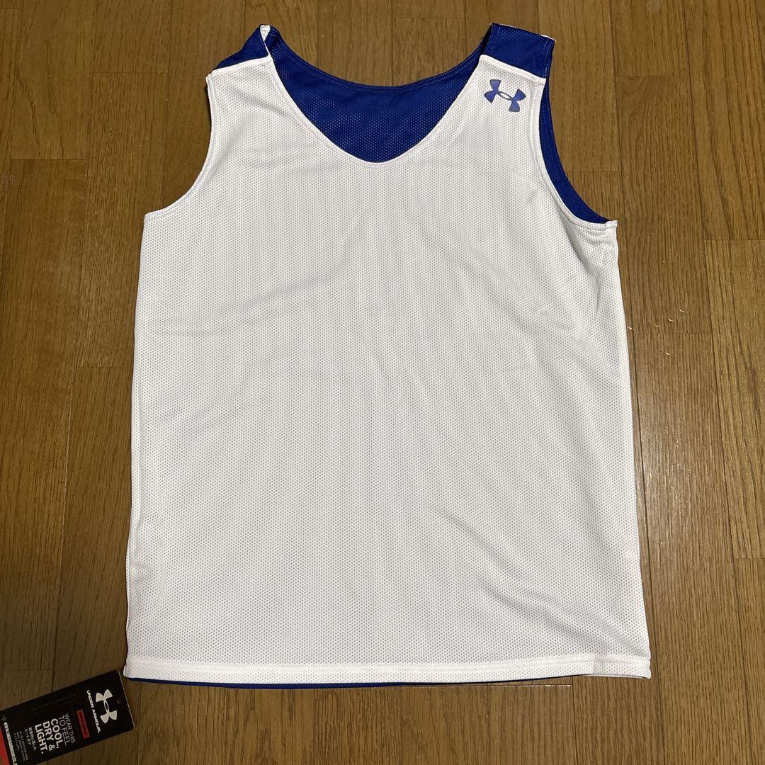 通気性の良いメッシュ素材のタンクトップ、青と白の配色。