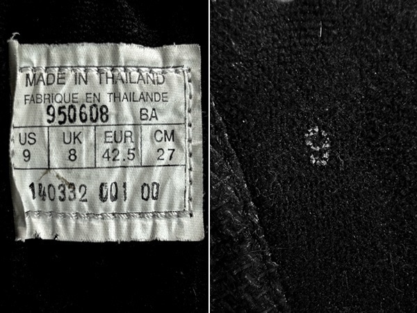 状態は中古でビンテージモデル特有の経年の使用感やヤレ感、小汚れや小キズ、アウトソールの軽微な硬化等ありますがスエードの色抜けは少なく致命的なダメージや汚れは特にない、まだまだ着用可能なユーズドです(状態は当方の主観になります)。