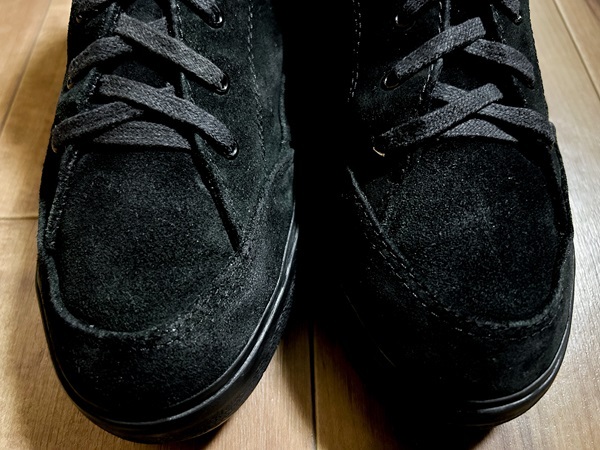 カラーはブラックのワントーン、シックでスタイリッシュな美配色。素材はスエード(本革)です