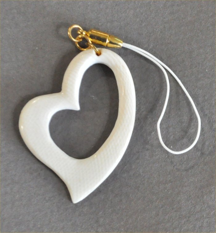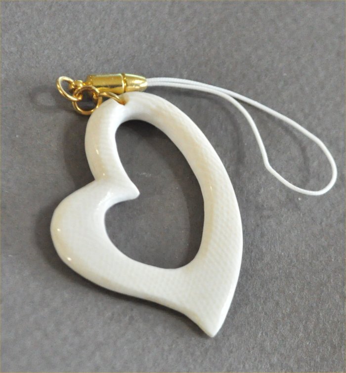 オープンハートのストラップサイズは33mm×42mm厚み5mm磨き仕上げ素材マンモス牙ナンタケットバスケットに下げると素敵です。