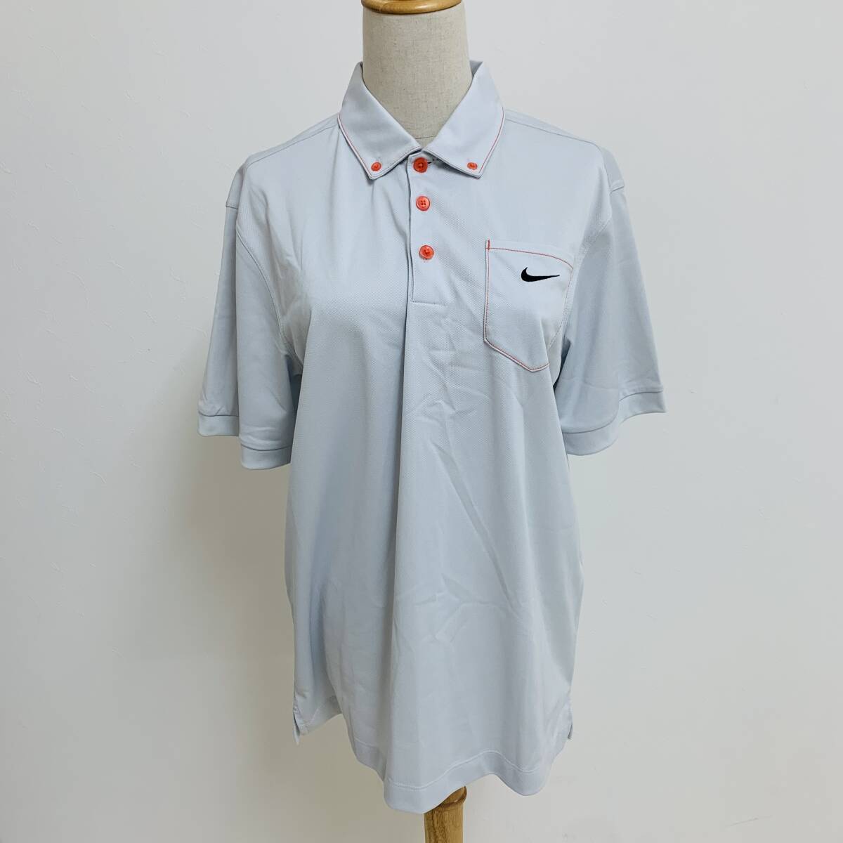YH2484 NIKE GOLF ナイキゴルフ メンズ 半袖 ポロシャツ ゴルフウェア DRI-FIT ドライフィット グレー Lサイズ 袖リブ 万能 USED 古着