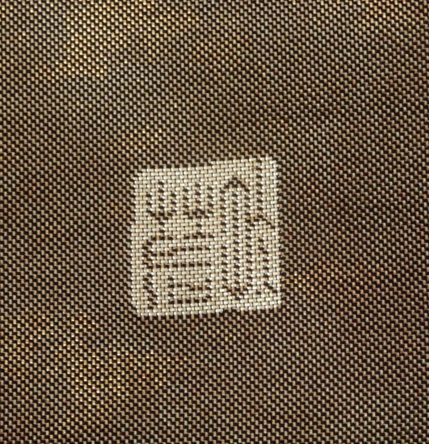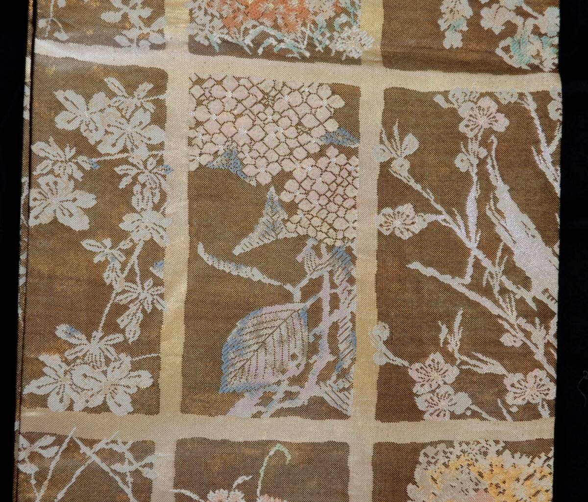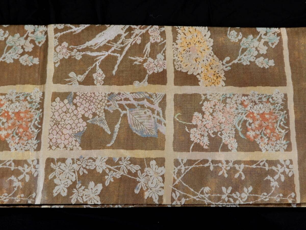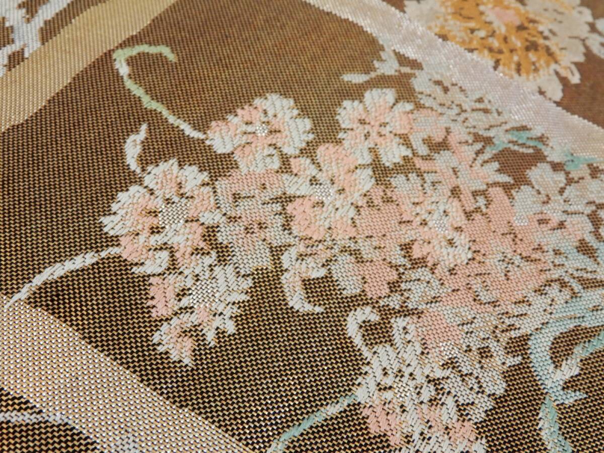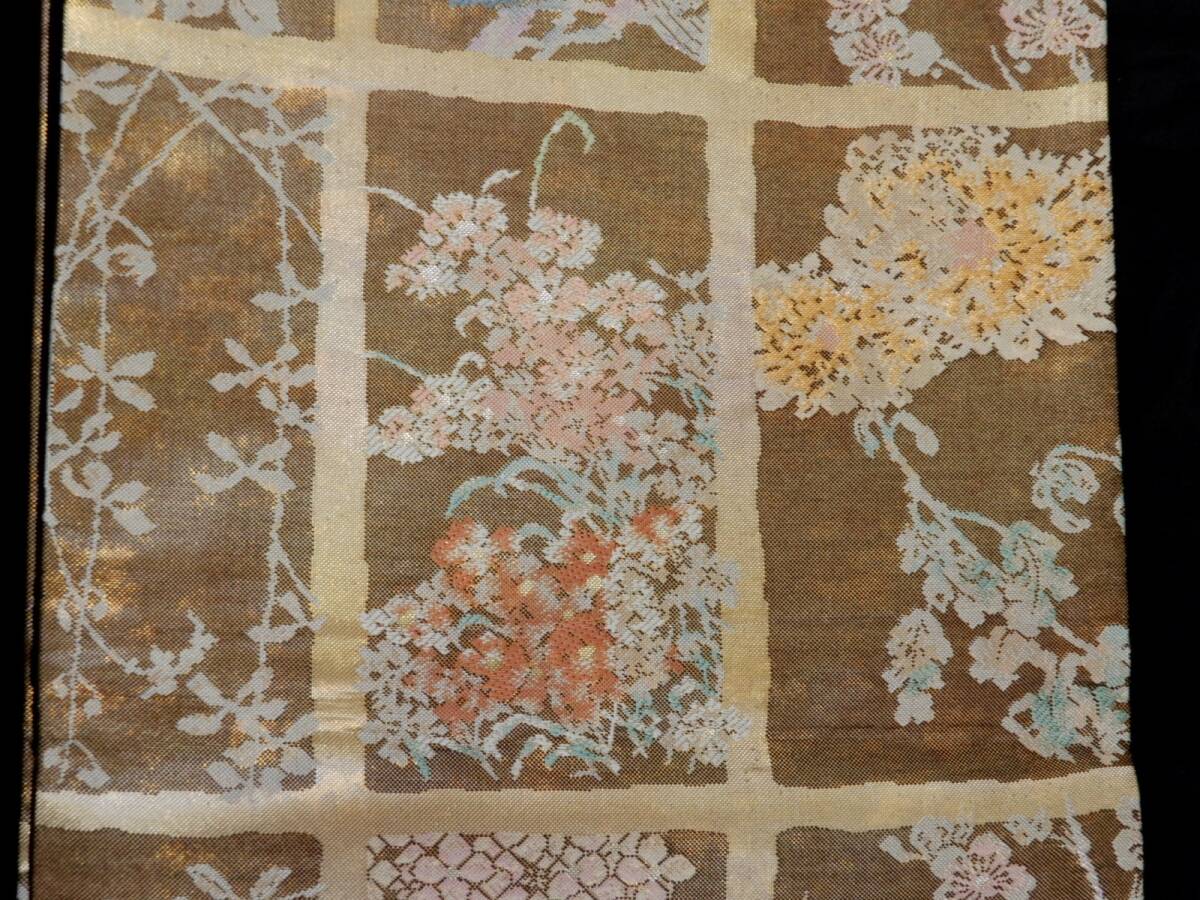<銀の斧>正絹・金箔の袋帯・岩佐の銘入り・六通・美品・少し長め