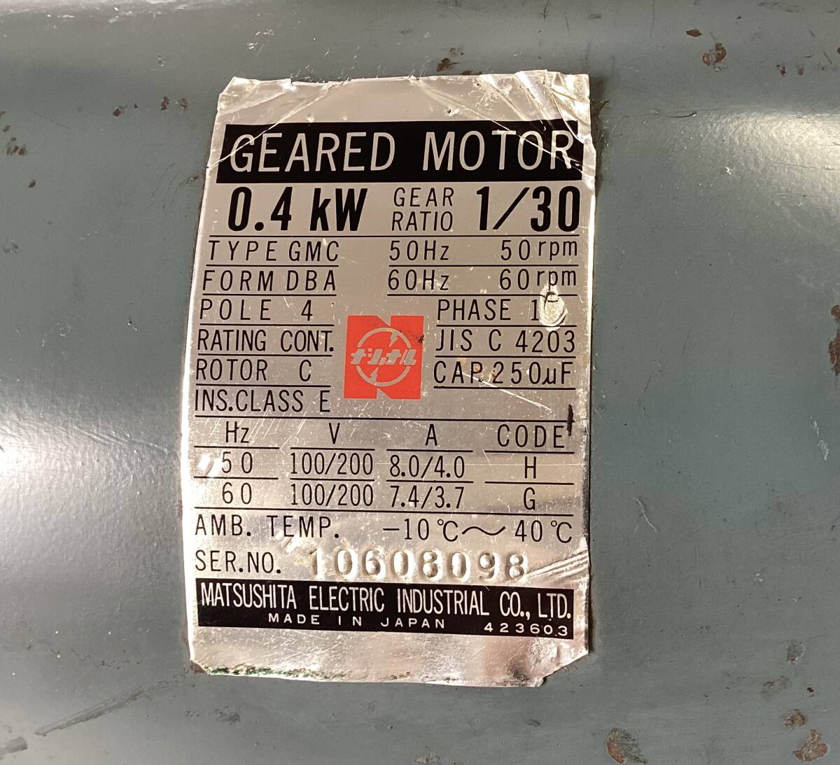 松下電工 ギアモーター TYPEーGMC 0.4kw 4POLE 【動作確認済】