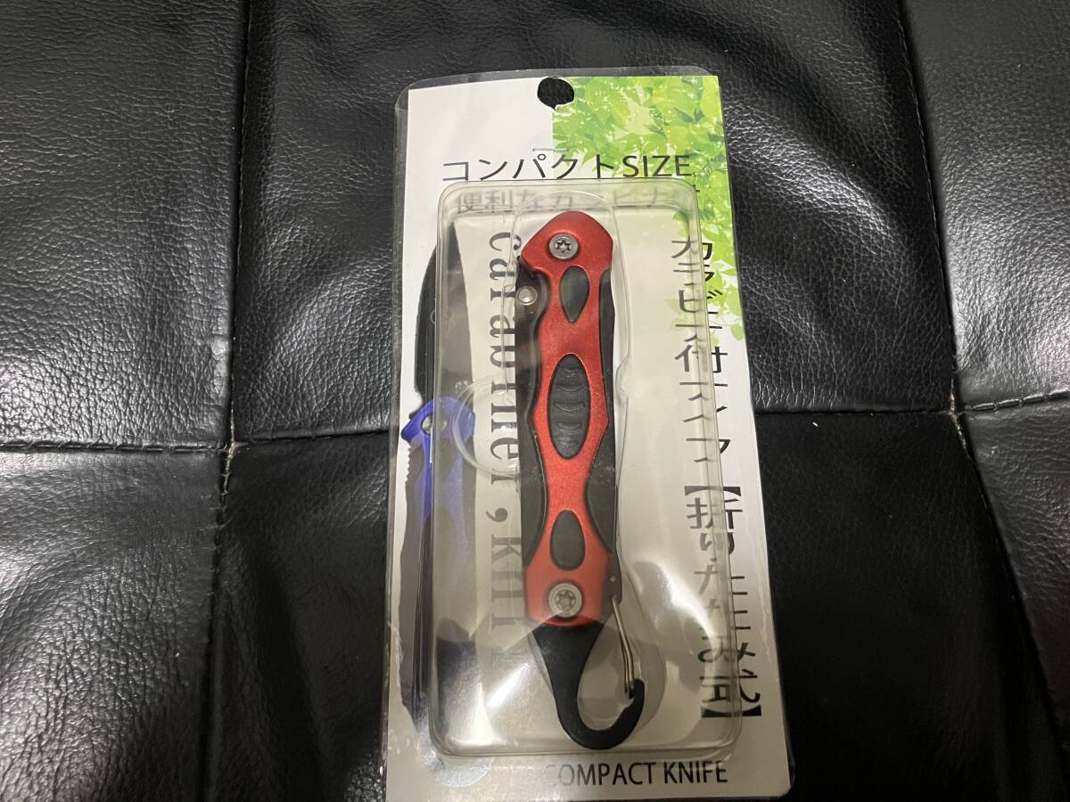 カラビナ付きナイフ 折り畳み式ナイフ コンパクトナイフ 赤