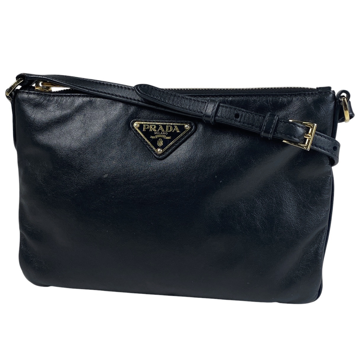 | プラダ PRADA ロゴプレート ショルダーバッグ 斜め掛け ショルダーバッグ レザー ネロ(ブラック) レディース 【中古】 |