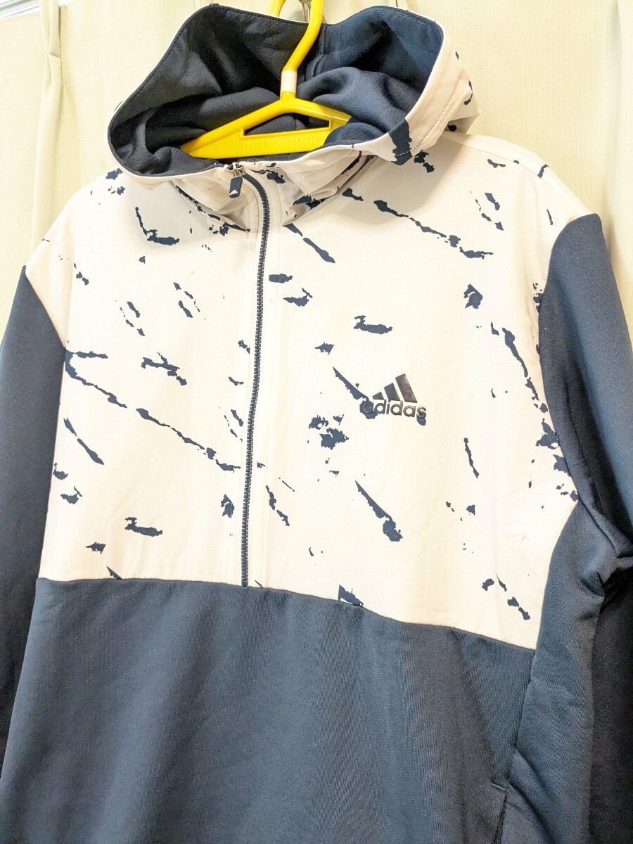 【adidas Golf/アディダスゴルフ】 プライムブルー ファブリックミックス ストレッチ長袖ハーフジップフーディー XL パーカー