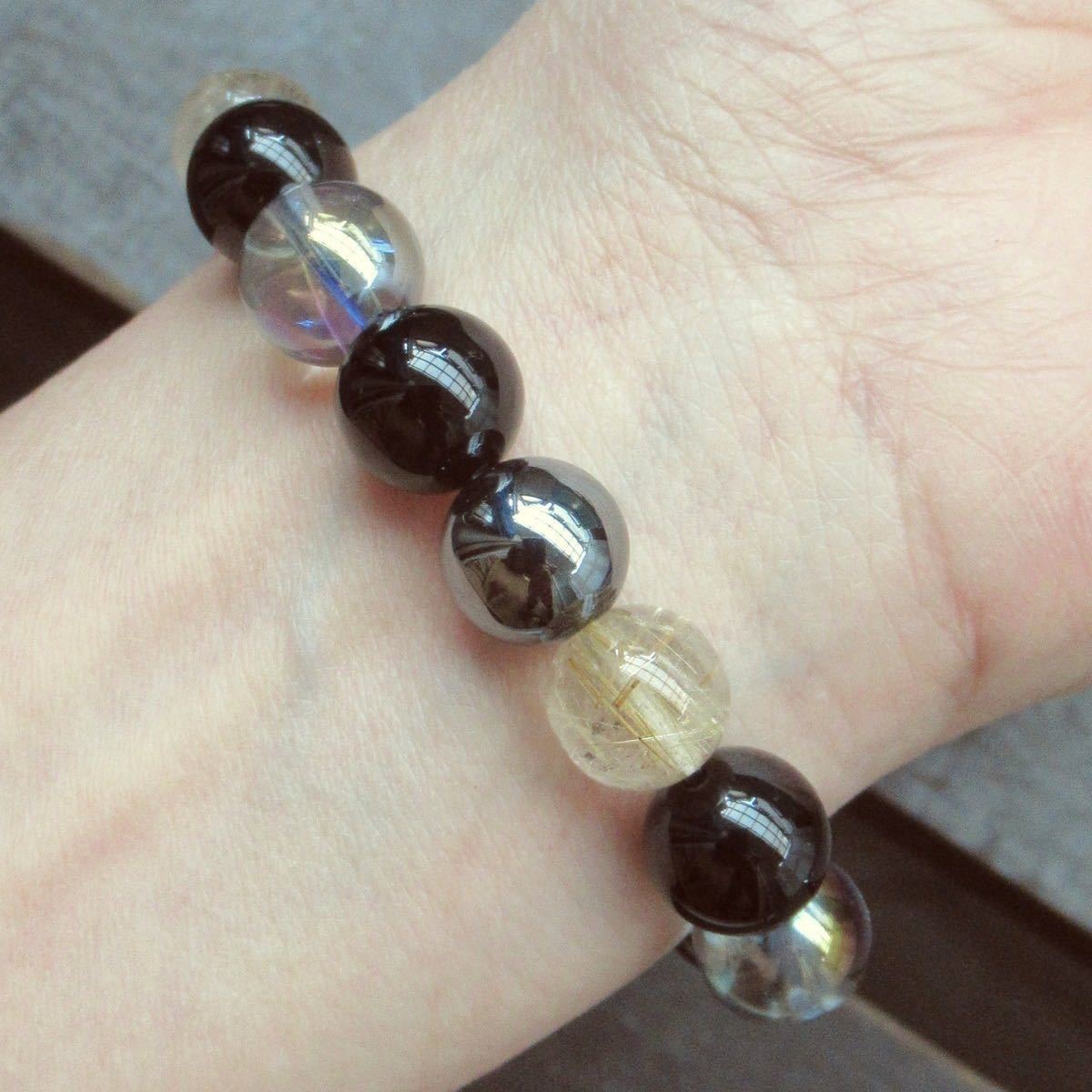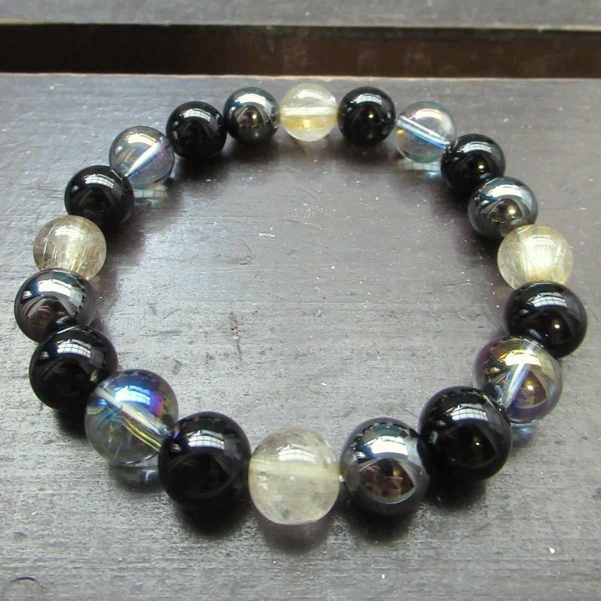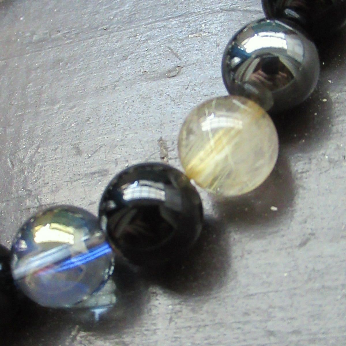 ルチルクォーツxヘマタイトxオニキスxコスモオーラブレスレット 天然石 パワーストーン