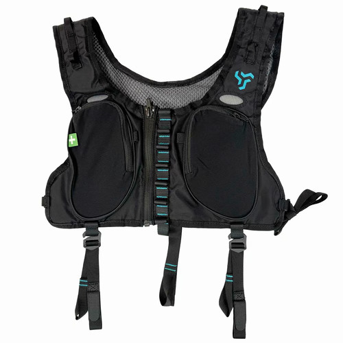 これにより、ハーネスからぶら下がっているギアの重量が腰から肩に分散され、負担が回避されます。