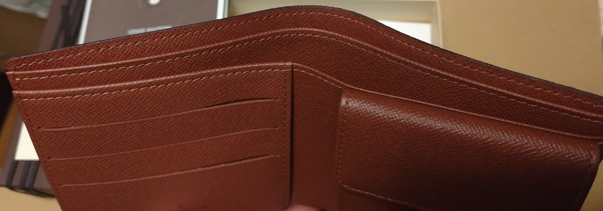カバンにかさばらないサイズで、コンパクトながらも紙幣やカード・小銭を収納できる機能性の高いお財布です。なかなか使えず、未使用のまま乾燥剤とともに大事に保管していたため、状態はかなり良いかと思います。直営店で購入しましたので間違いなく本物です。