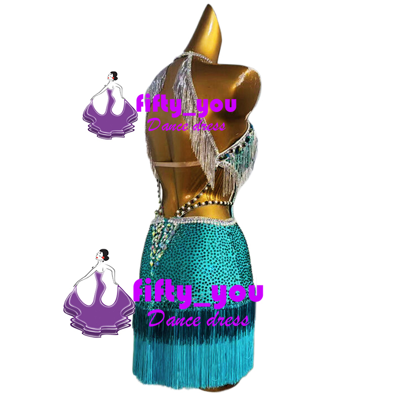 新品fifty_you レディース社交ダンス衣装  サイズセミオーダー高級衣装 ラテンデモ用ドレス ビーズいっぱい飾 キラキラドレス