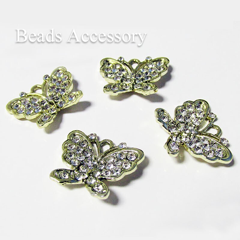 商品名:BA-0701 蝶々にダイヤモンド 22×18mm ゴールドカラー 4個