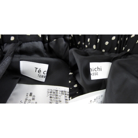 未使用品 テチチ Te chichi フレアスカート ギャザースカート マキシ丈 ロング丈 ドット柄 F 黒 ブラック ライトベージュ レディース