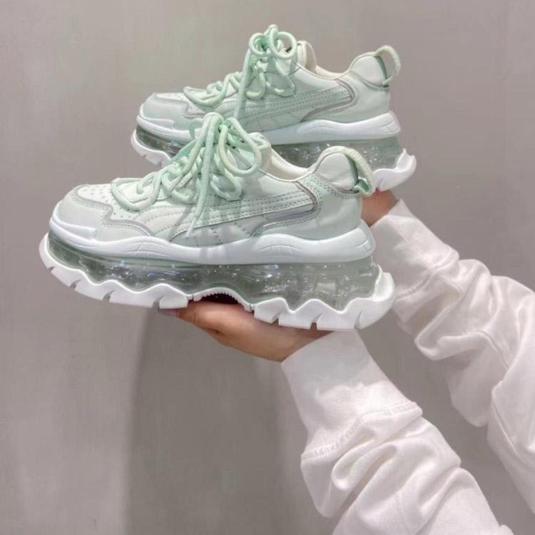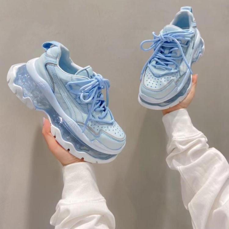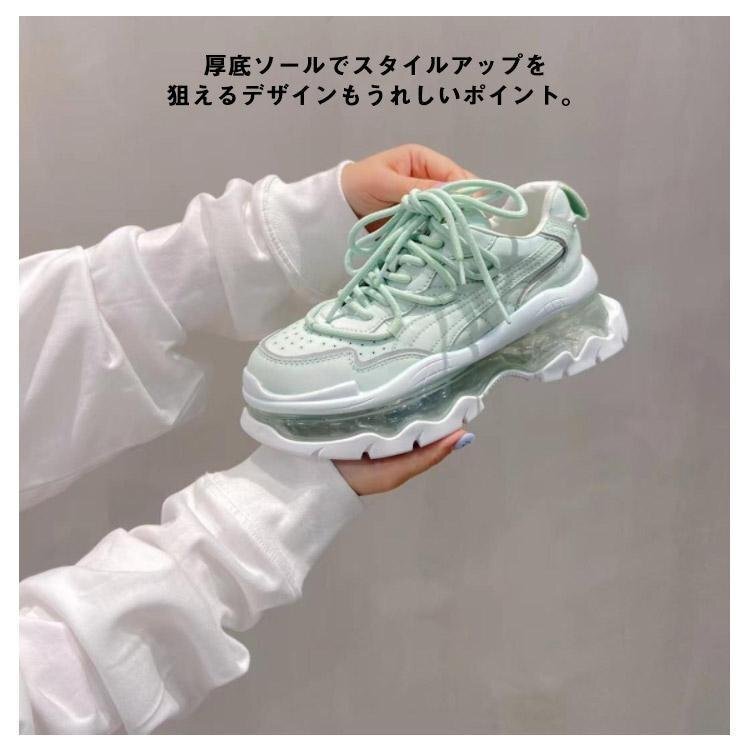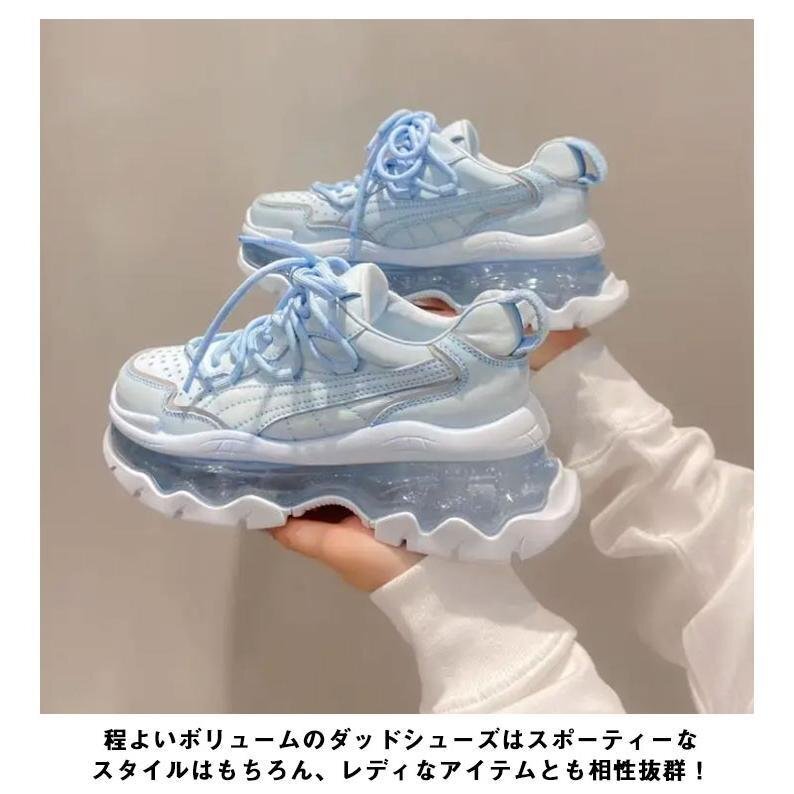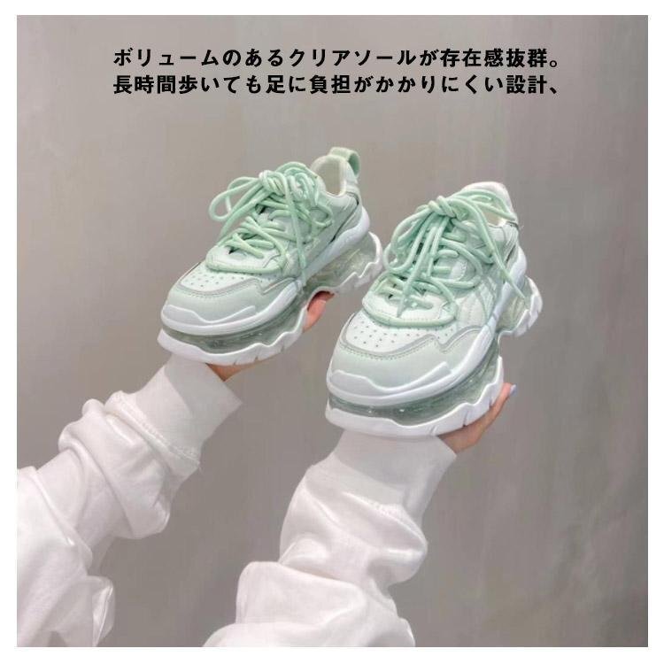 【25.0cm】厚底 スニーカー 涼しげ クリアソール ボリュームソール 足首ほっそり ダッドシューズ レースアップ ローカット 3色選択可