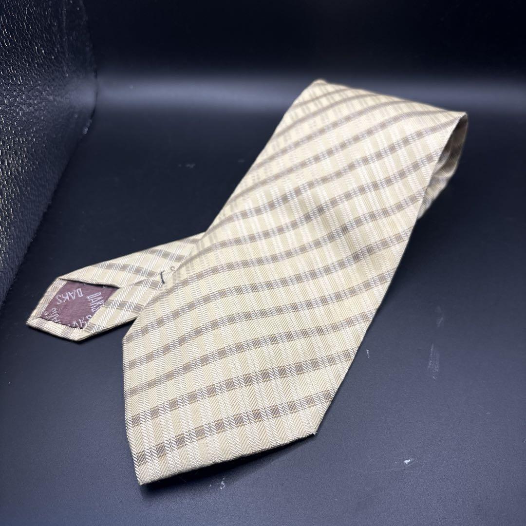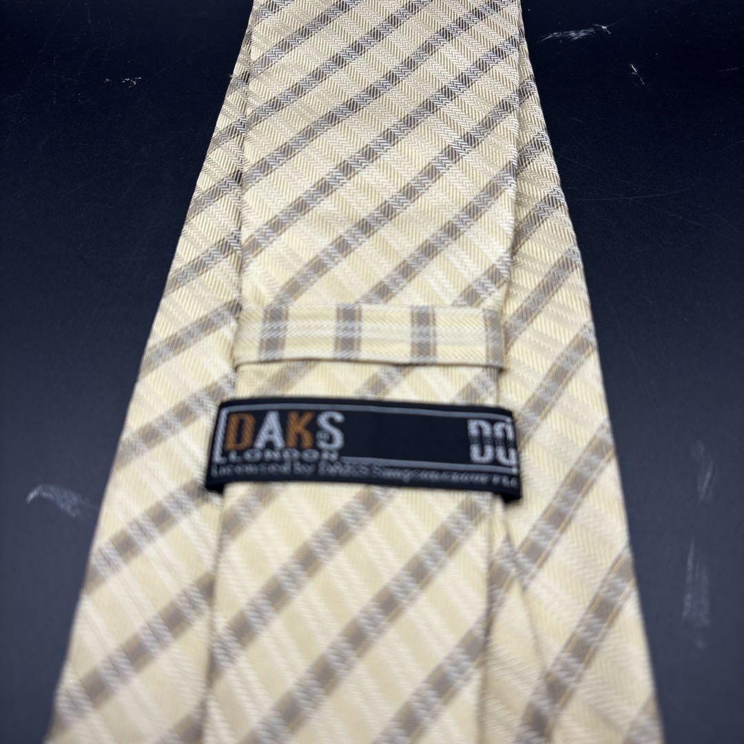 DAKSのシルク製チェック柄ネクタイ、ベージュ。